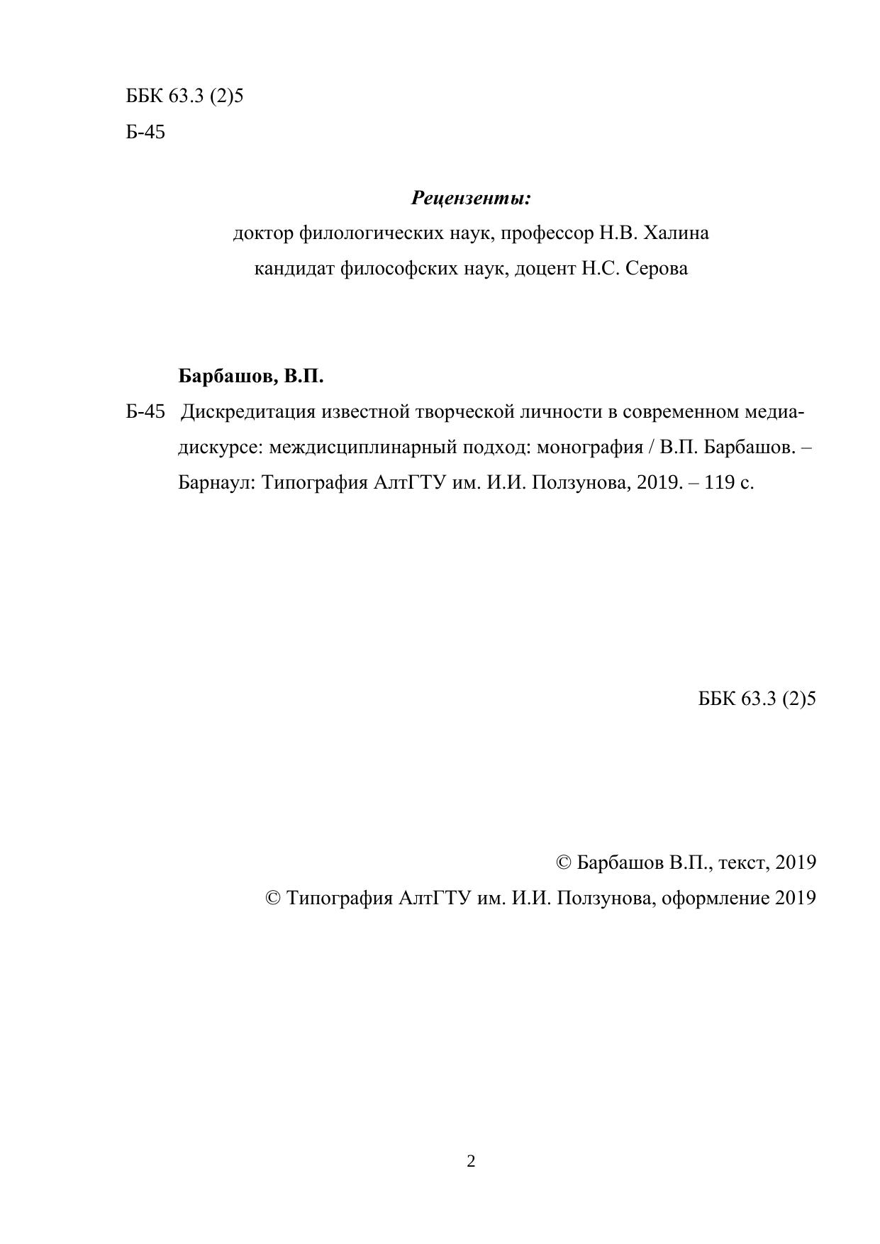 Авторы: Барбашов В. П.