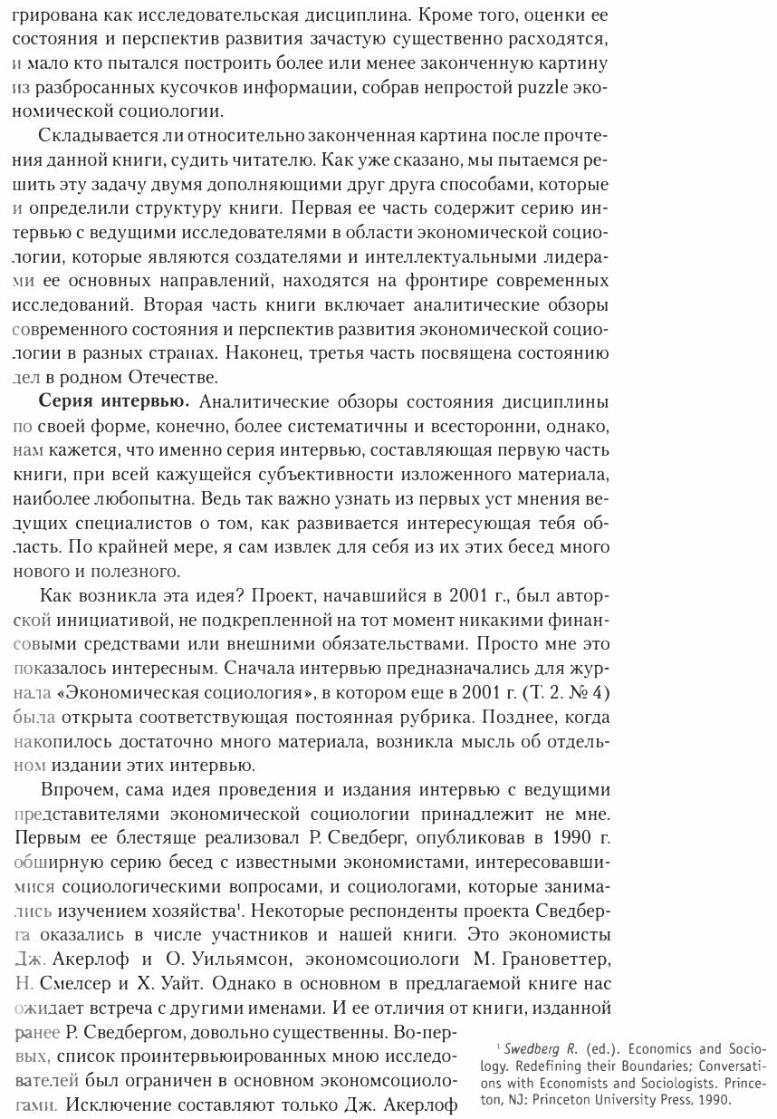 Книга выполнена в особом жанре: это автопортреты экономической социологии, написанные лучшими специалистами из разных стран. Первая часть книги содержит серию интервью с ведушими исследователями в области экономической социологии - создателями и интеллектуальными лидерами ее основных направлений. Вторая часть включает аналитические обзоры современного состояния и перспектив развития экономической социологии в разных странах. Третья часть посвящена экономической социологии в России. Книга - своего рода микроэнциклопедия современной экономической социологии, из которой немало полезного могут почерпнуть и начинающие, и зрелые исследователи.