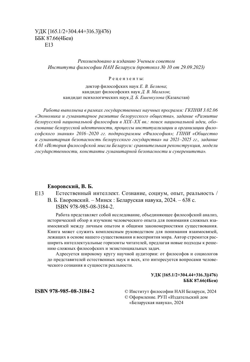 Естественный интеллект. Сознание, социум, опыт, реальность