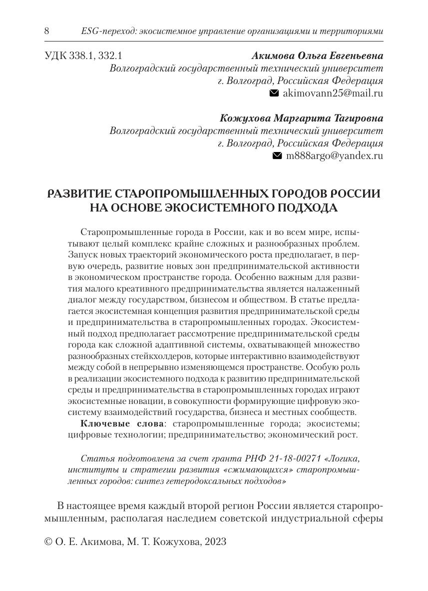 В сборнике статей представлены результаты научных исследований в сфере комплексного развития территорий городов и регионов. Рассмотрены проблемы ESG-перехода и экосистемного управления организациями и территориями, развития инвестиционного потенциала территорий и долевой экономики, развития социального пространства территорий, роли масс-медиа в развитии территорий и цифровой трансформации общества. В первой части сборника представлены статьи преподавателей вузов и аспирантов. Сборник статей предназначен для студентов вузов, аспирантов и преподавателей вузов. Может быть использован в системе дополнительного образования государственных и муниципальных служащих.