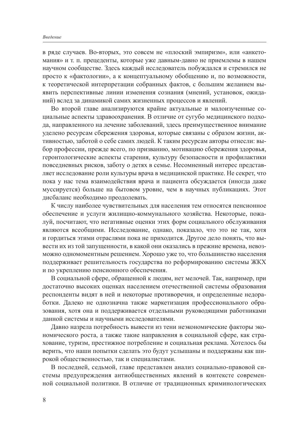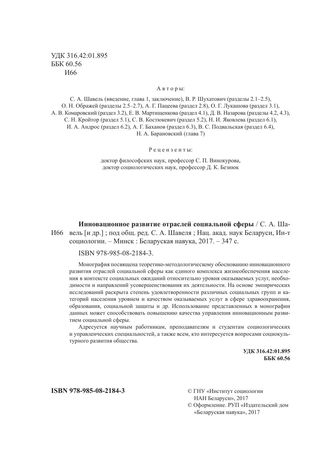 Монография посвящена теоретико-методологическому обоснованию инновационного развития отраслей социальной сферы как единого комплекса жизнеобеспечения населения в контексте социальных ожиданий относительно уровня оказываемых услуг, необходимости и направлений усовершенствования их деятельности. На основе эмпирических исследований раскрыта степень удовлетворенности различных социальных групп и категорий населения уровнем и качеством оказываемых услуг в сфере здравоохранения, образования, социальной защиты и др. Использование представленных в монографии данных может способствовать повышению качества управления инновационным развитием социальной сферы. Адресуется научным работникам, преподавателям и студентам социологических и управленческих специальностей, а также всем, кто интересуется вопросами социокультурного развития общества.