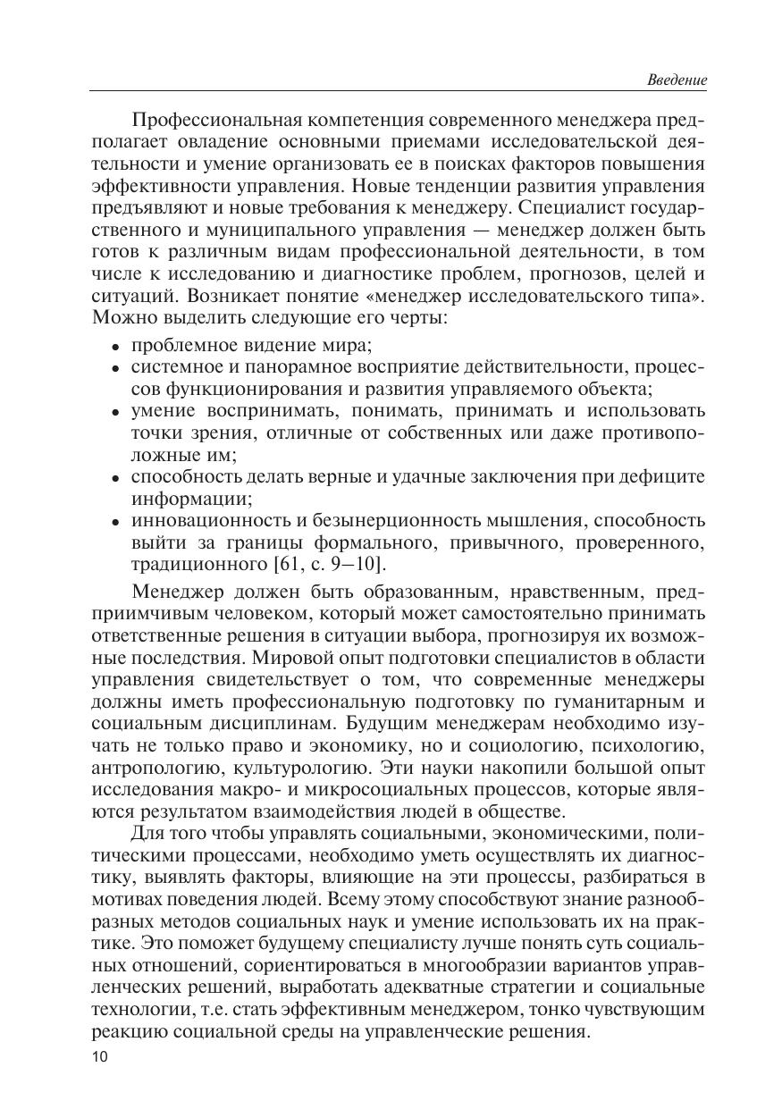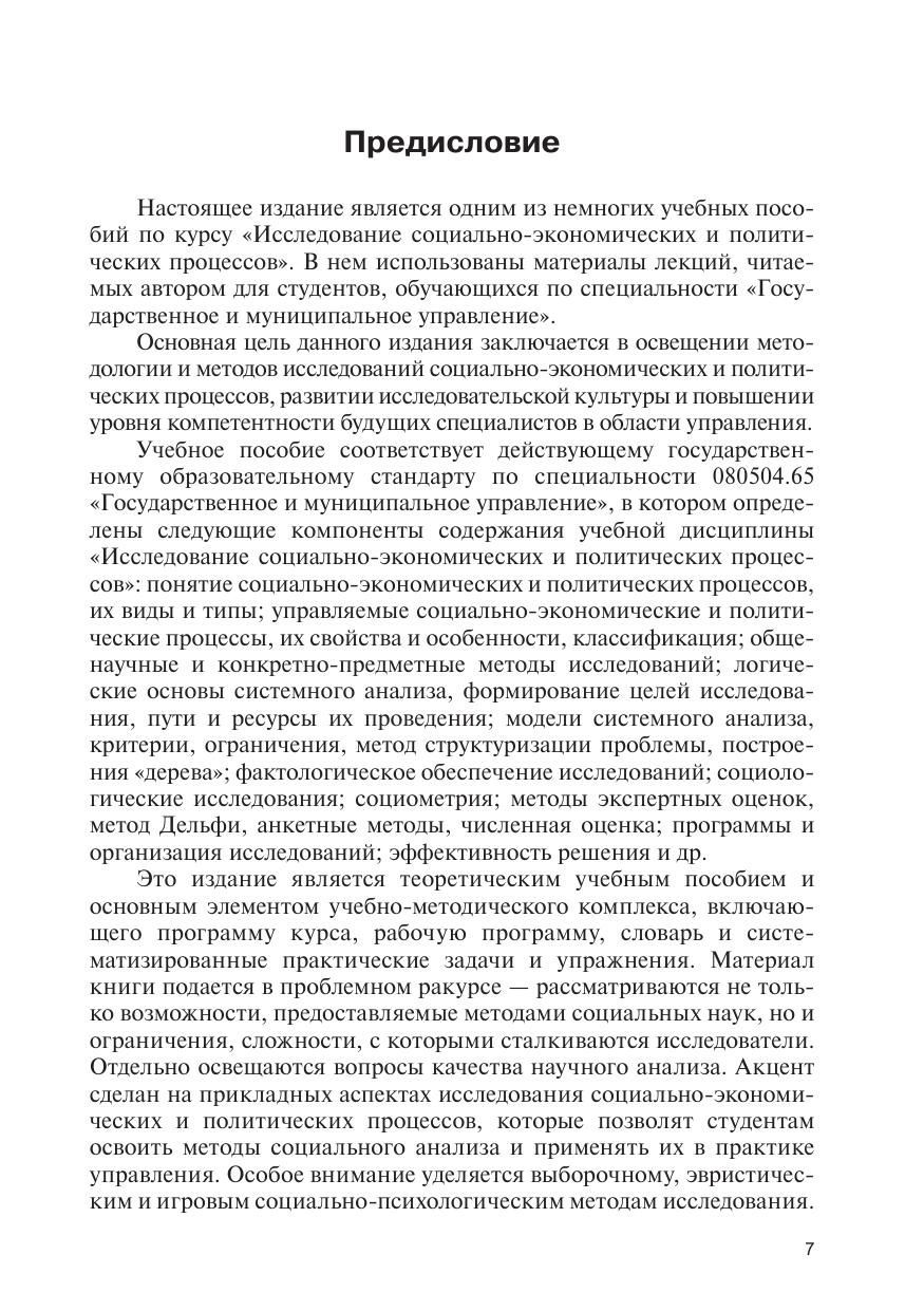 Рассматриваются методология системного анализа социально-экономических и политических процессов, конкретные методы научного исследования, применяющиеся в социальных науках. Особое внимание уделяется методам социологического исследования. Показана возможность использования научных исследований в управленческой практике, в деятельности органов государственной власти и местного самоуправления. Значительное внимание уделено исследованию эффективности управленческих решений. Изложение сопровождается примерами, рисунками и таблицами. Для студентов высших учебных заведений, получающих образование по специальности (направлению) «Государственное и муниципальное управление». Может быть использовано в учебном процессе при подготовке кадров по родственным направлениям и специальностям, а также в системе дополнительного профессионального образования, повышения квалификации и переподготовки государственных и муниципальных служащих.