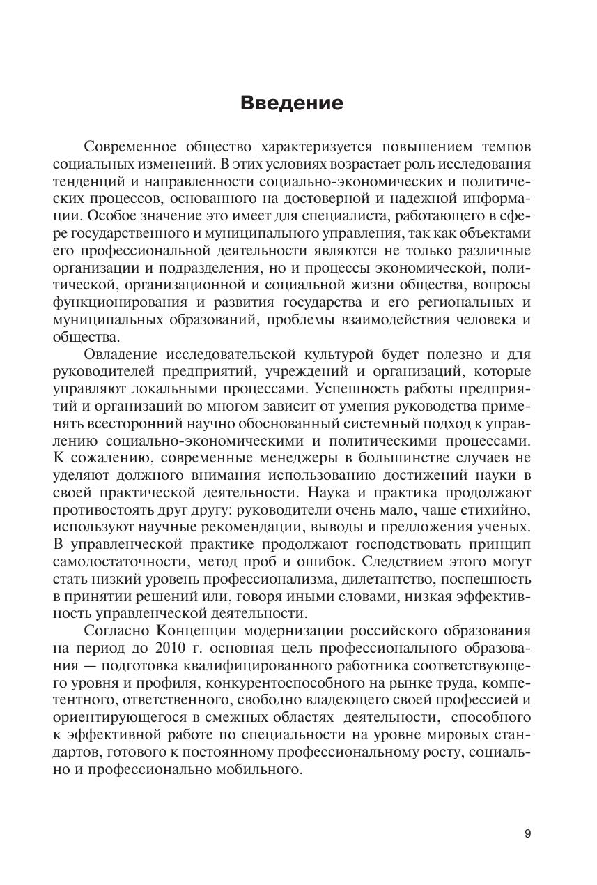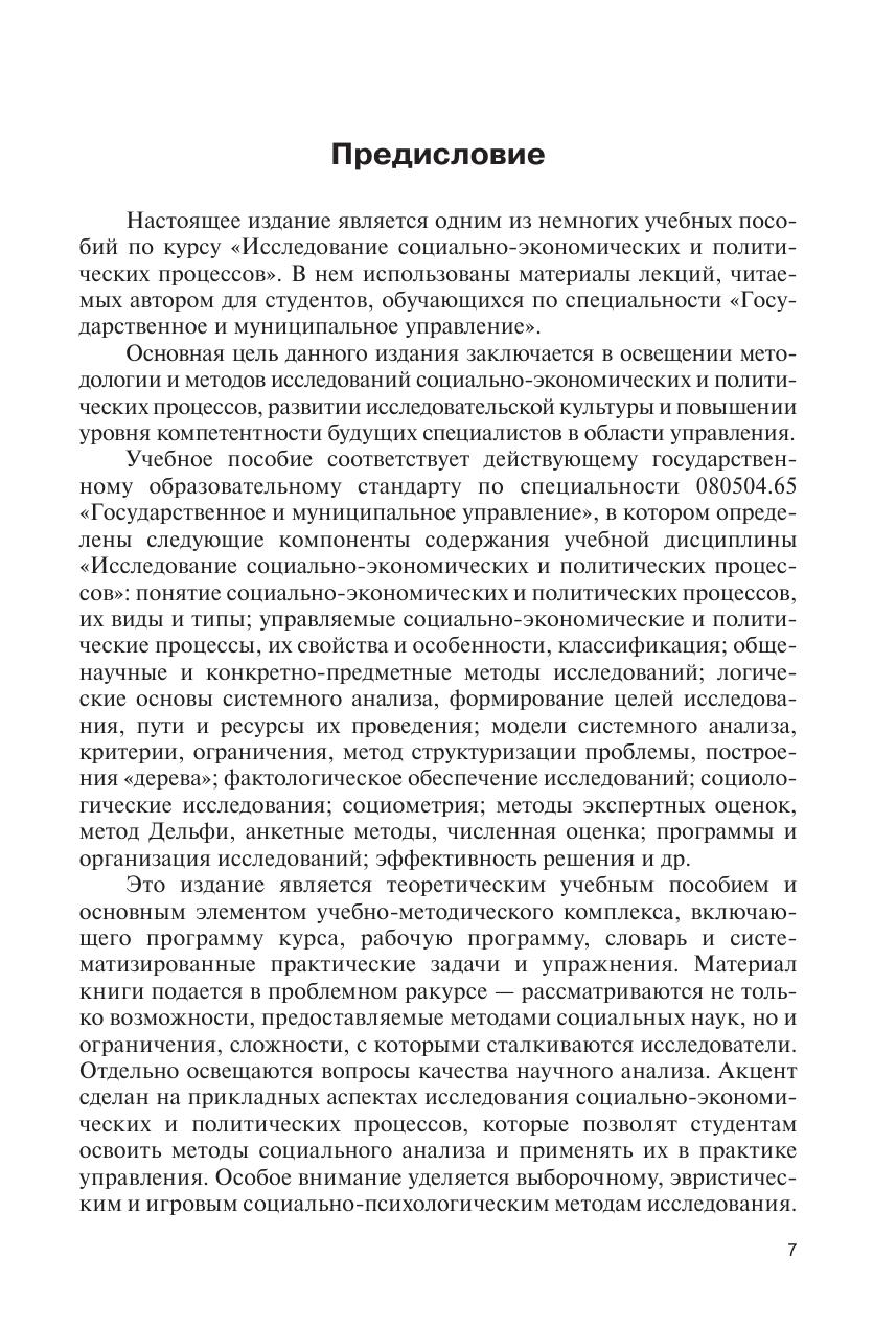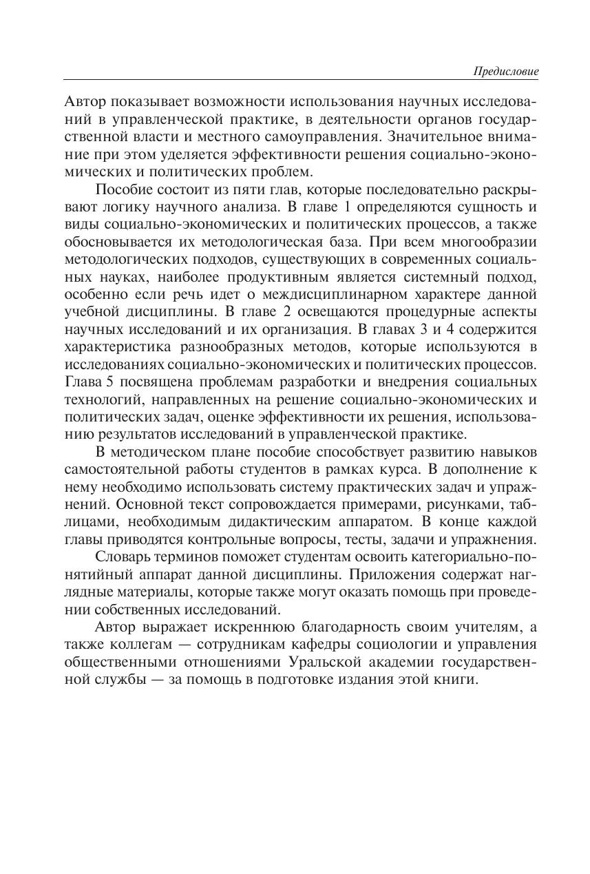 Рассматриваются методология системного анализа социально-экономических и политических процессов, конкретные методы научного исследования, применяющиеся в социальных науках. Особое внимание уделяется методам социологического исследования. Показана возможность использования научных исследований в управленческой практике, в деятельности органов государственной власти и местного самоуправления. Значительное внимание уделено исследованию эффективности управленческих решений. Изложение сопровождается примерами, рисунками и таблицами. Для студентов высших учебных заведений, получающих образование по специальности (направлению) Государственное и муниципальное управление». Может быть использовано в учебном процессе при подготовке кадров по родственным направлениям и специальностям, а также в системе дополнительного профессионального образования, повышения квалификации и переподготовки государственных и муниципальных служащих.