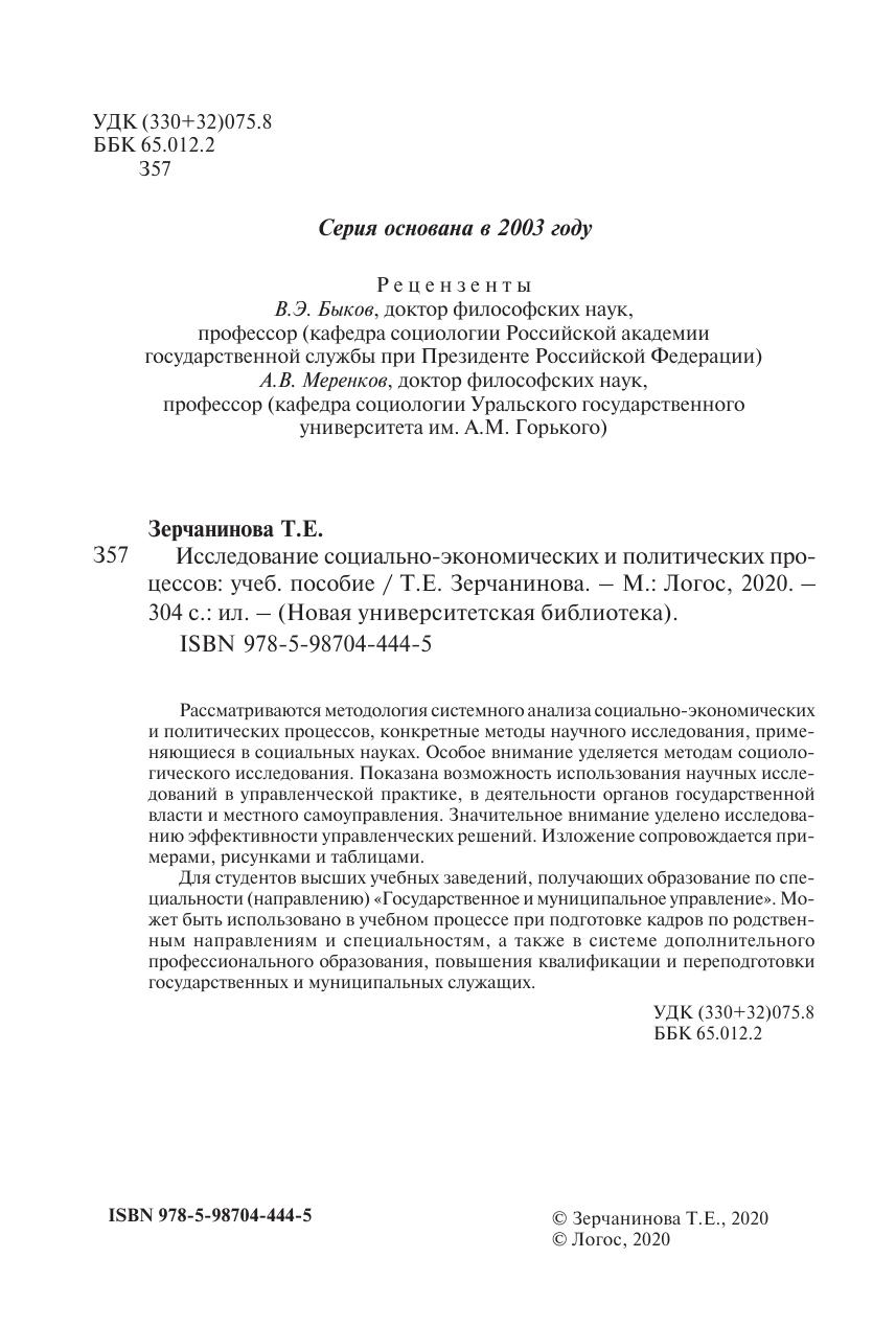Исследование социально-экономических и политических процессов