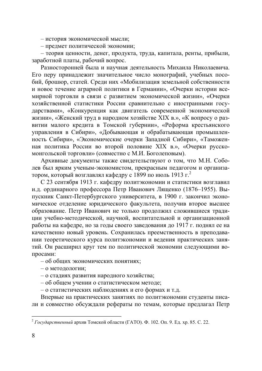 В книге описана история становления кафедры политической экономии ТГУ как организационно-административной ячейки учебного процесса и научного ядра экономических школ. Рассказывается о профессорско-преподавательском составе кафедры с момента ее открытия в составе юридического факультета Томского государственного университета. Для широкого круга читателей.