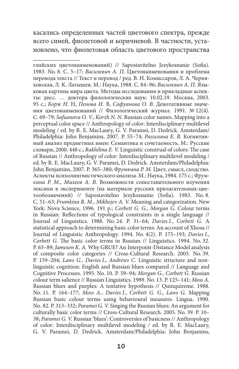 Картография цвета: диагностика развития цветонаименований русского языка с использованием естественно-научных, историографических, социологических и психологических методов