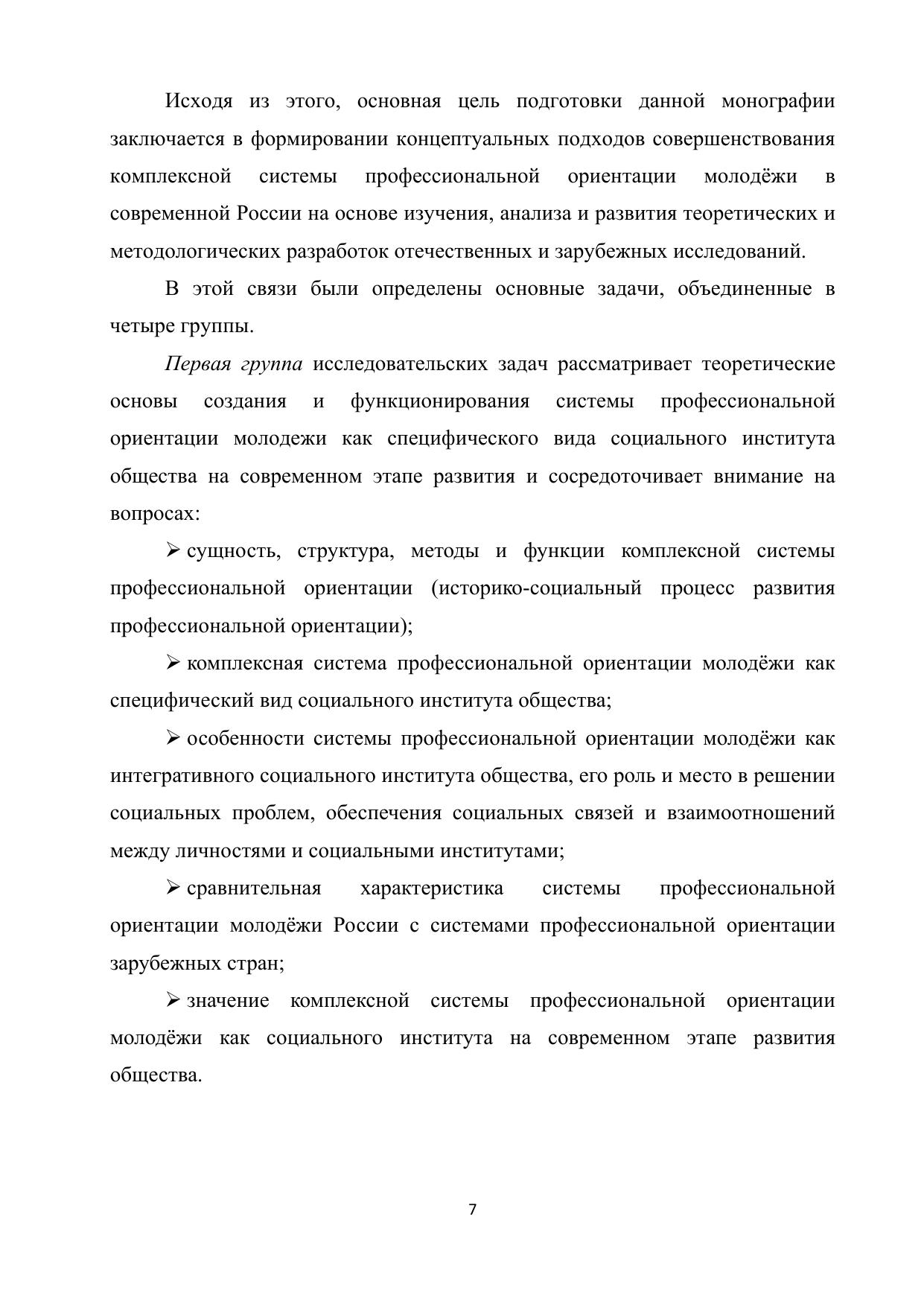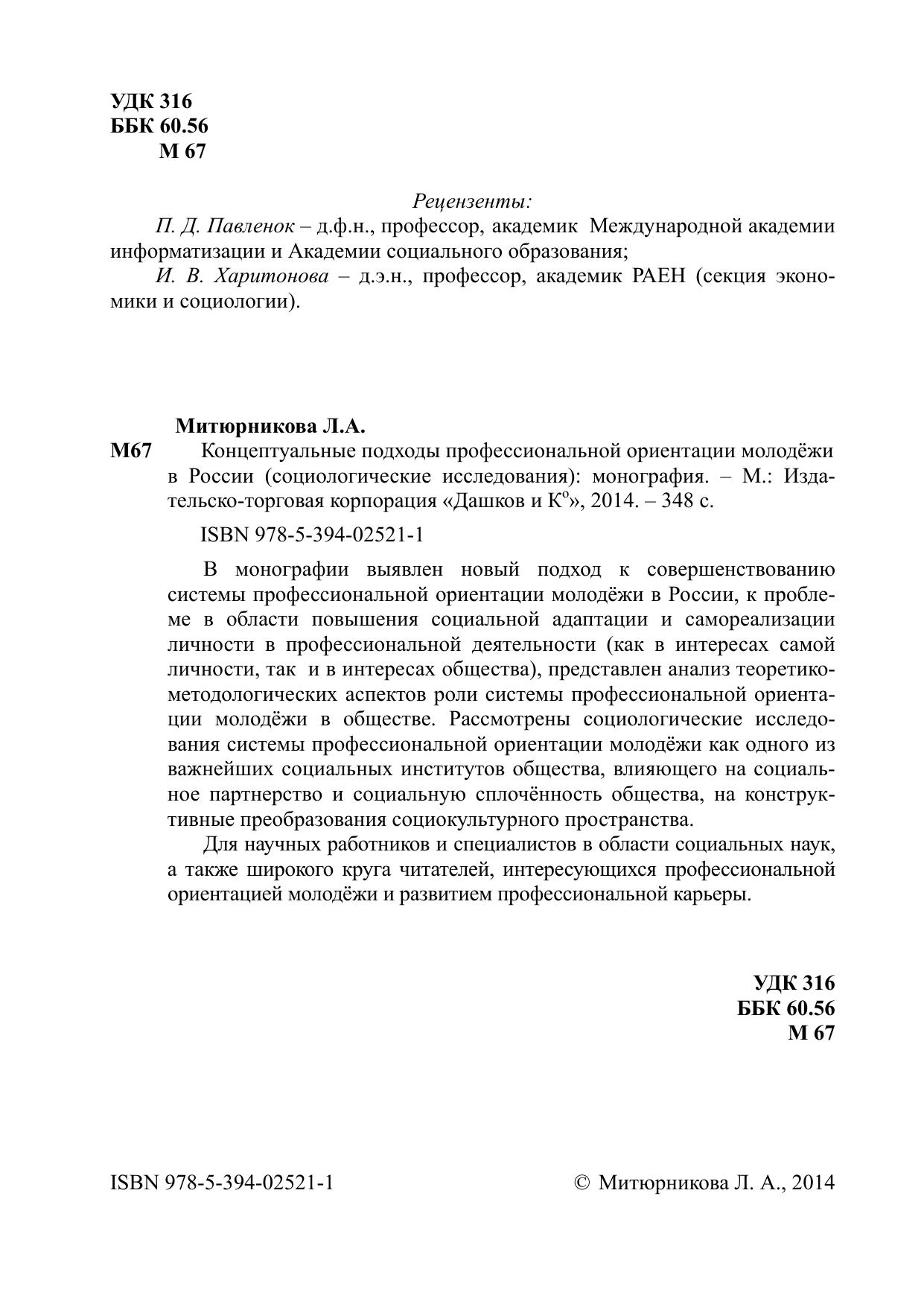 В монографии выявлен новый подход к совершенствованию системы профессиональной ориентации молодёжи в России, к проблеме в области повышения социальной адаптации и самореализации личности в профессиональной деятельности (как в интересах самой личности, так и в интересах общества), представлен анализ теоретико-методологических аспектов роли системы профессиональной ориентации молодёжи в обществе. Рассмотрены социологические исследования системы профессиональной ориентации молодёжи как одного из важнейших социальных институтов общества, влияющего на социальное партнерство и социальную сплочённость общества, на конструктивные преобразования социокультурного пространства.