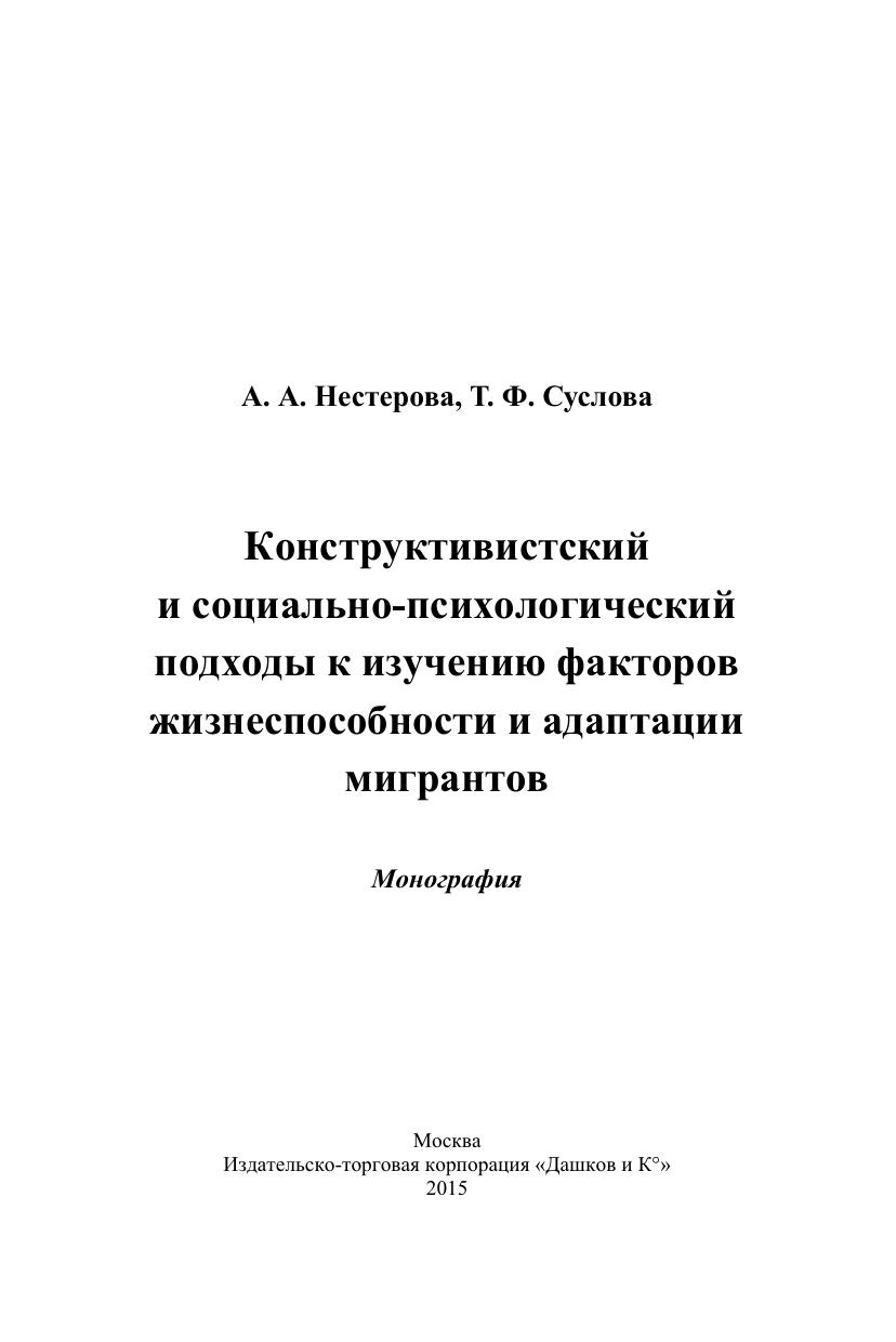 Конструктивистский и социально-психологический подходы к изучению факторов жизнеспособности и адаптации мигрантов: монография