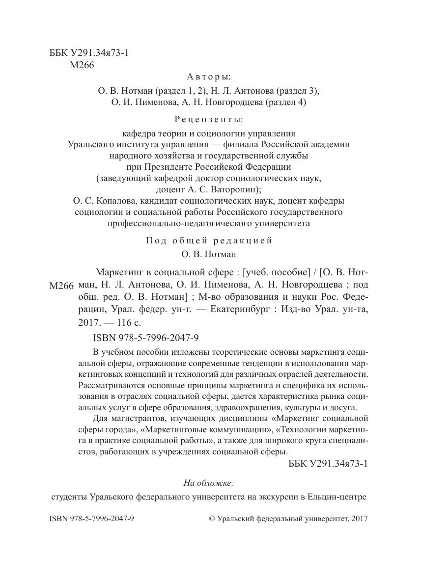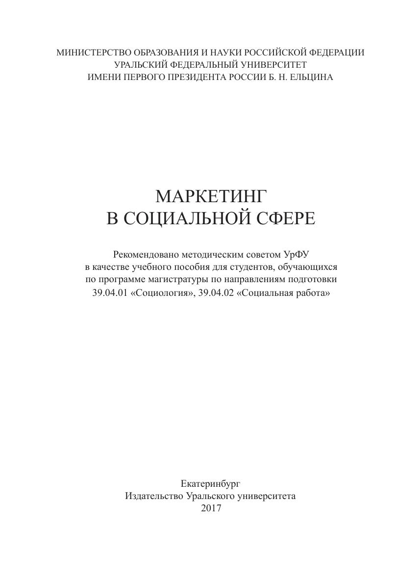 В учебном пособии изложены теоретические основы маркетинга социальной сферы, отражающие современные тенденции в использовании маркетинговых концепций и технологий для различных отраслей деятельности. Рассматриваются основные принципы маркетинга и специфика их использования в отраслях социальной сферы, дается характеристика рынка социальных услуг в сфере образования, здравоохранения, культуры и досуга.