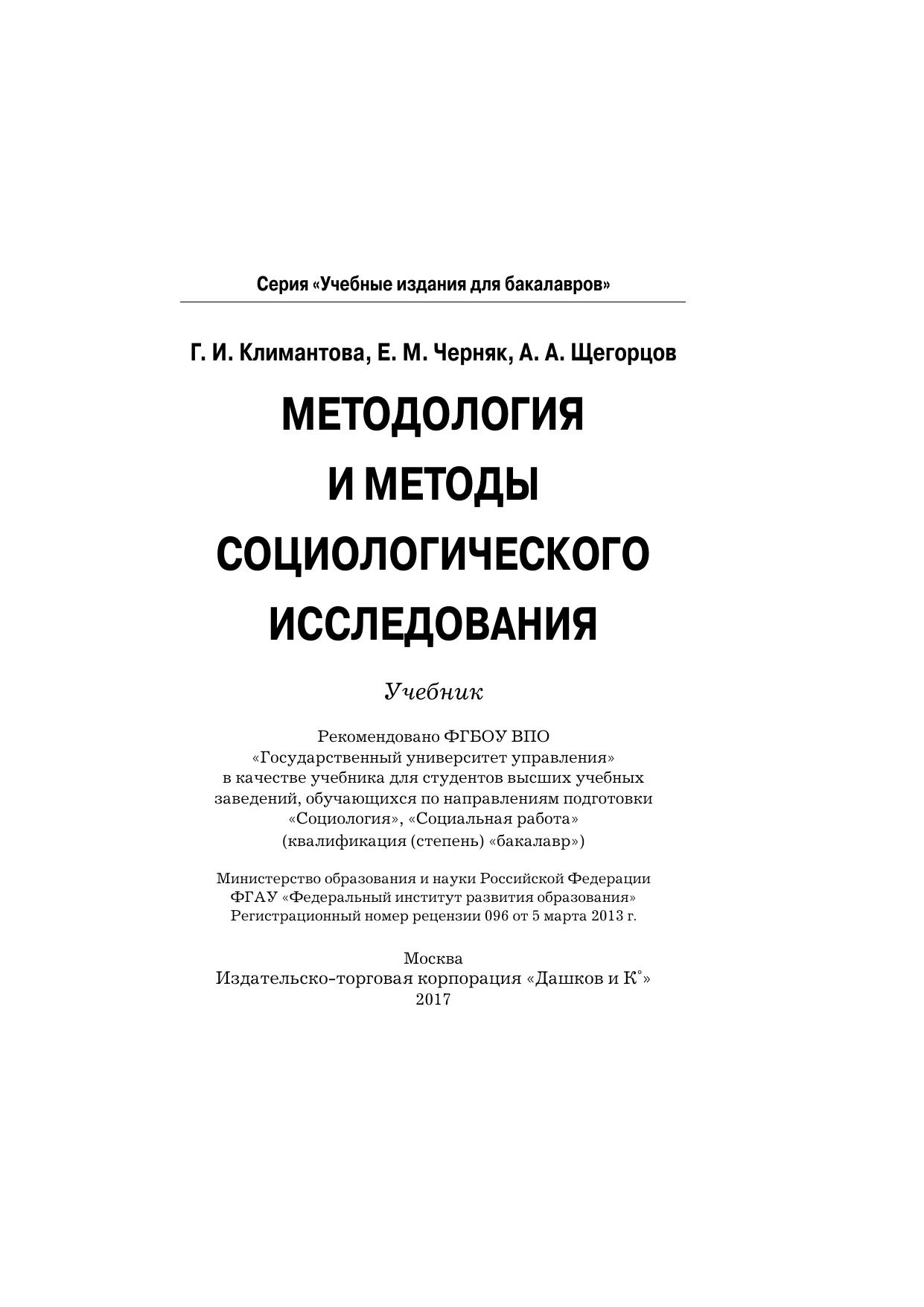 Методология и методы социологического исследования: Учебник для бакалавров