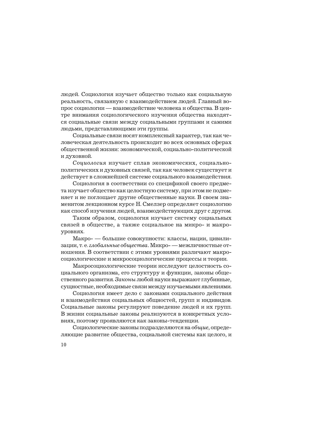 Учебник написан в соответствии с Федеральным государственным образовательным стандартом высшего профессионального образования и опирается на лучшие зарубежные и отечественные научные издания и учебники по социологии. В нем представлены основные теоретические подходы ведущих отечественных и зарубежных социологов к изучению проблем общества, личности, семьи, детально рассмотрена методология социологических исследований, сопровождающаяся конкретными примерами из практической деятельности. Для студентов бакалавриата, обучающихся по направлениям подготовки "Социология", "Социальная работа".
