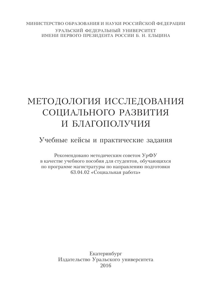 Методология исследования социального развития и благополучия : учебные кейсы и практические задания: учеб. пособие