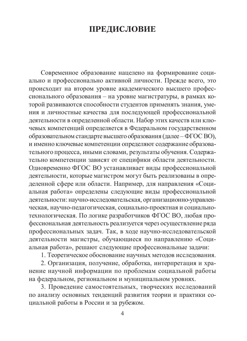 Учебное пособие раскрывает цели и задачи исследований в практике социальной работы, содержит обоснование методов исследований для конкретных социальных проблем, предлагает описание проведенных преподавателями и магистрантами кафедры социальной работы конкретных исследований, включает рекомендации к проведению исследований. Предназначено магистрантам, обучающимся по программам магистратуры «Инновационные технологии социальной работы с различными группами населения», «Управление и администрирование в социальной сфере».
