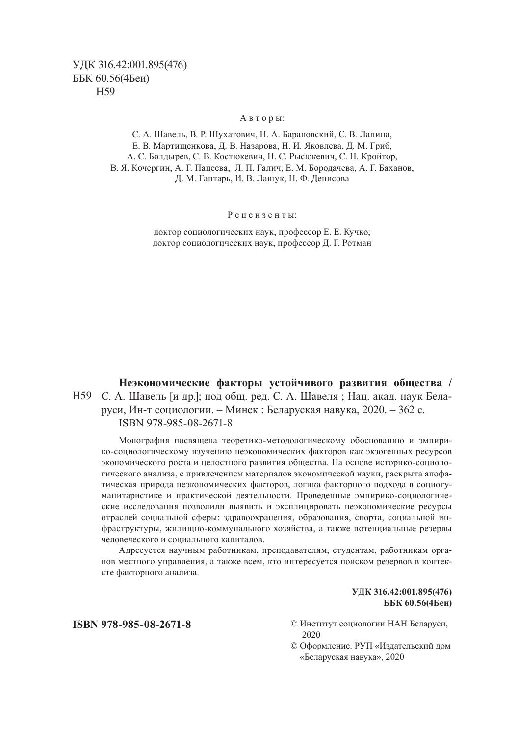 Монография посвящена теоретико-методологическому обоснованию и эмпирико-социологическому изучению неэкономических факторов как экзогенных ресурсов экономического роста и целостного развития общества. На основе историко-социологического анализа, с привлечением материалов экономической науки, раскрыта апофатическая природа неэкономических факторов, логика факторного подхода в социогуманитаристике и практической деятельности. Проведенные эмпирико-социологические исследования позволили выявить и эксплицировать неэкономические ресурсы отраслей социальной сферы: здравоохранения, образования, спорта, социальной инфраструктуры, жилищно-коммунального хозяйства, а также потенциальные резервы человеческого и социального капиталов.