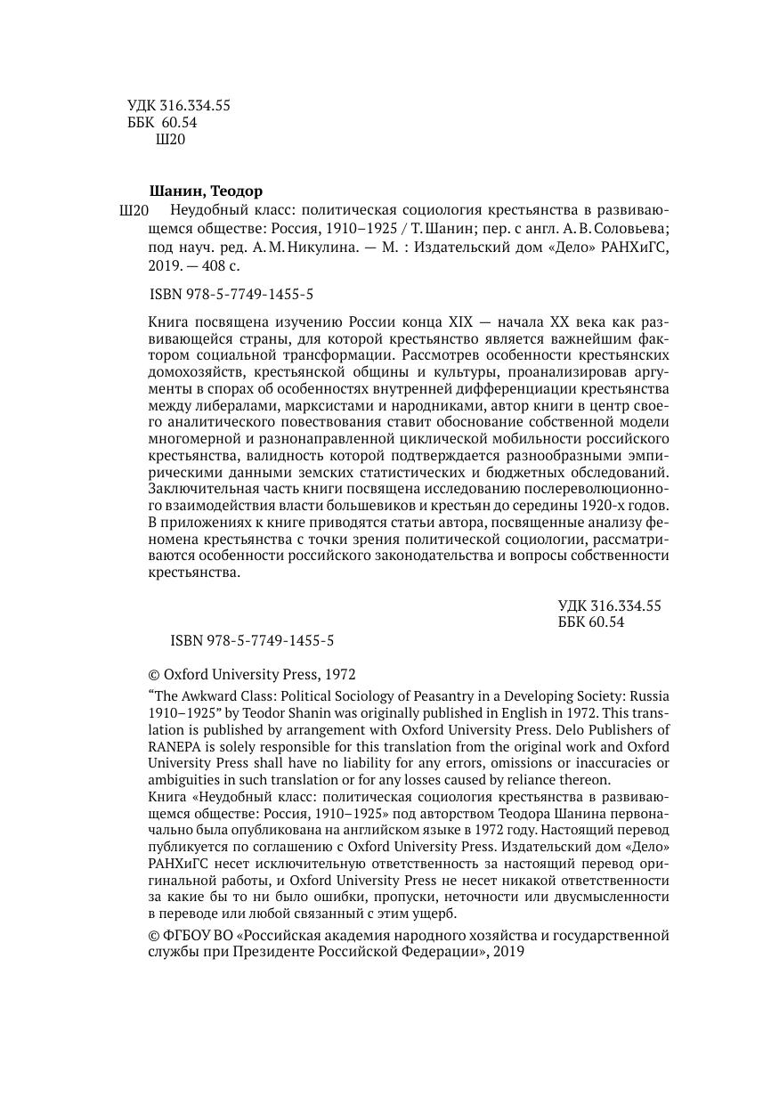 Неудобный класс: политическая социология крестьянства в развивающемся обществе: Россия, 1910–1925