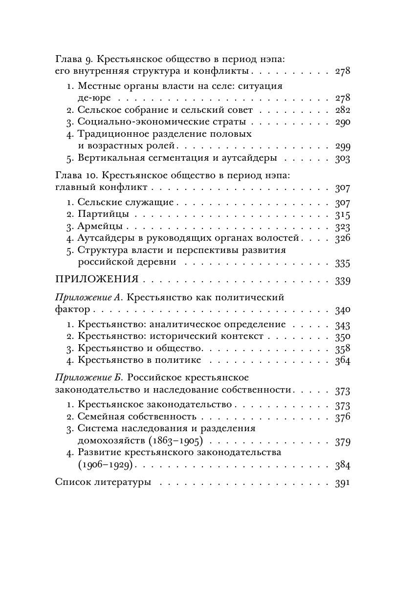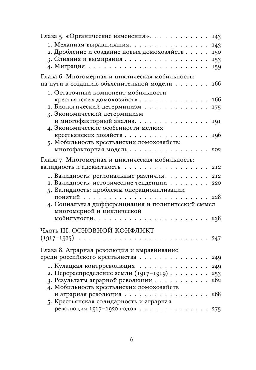 Книга посвящена изучению России конца XIX — начала XX века как развивающейся страны, для которой крестьянство является важнейшим фактором социальной трансформации. Рассмотрев особенности крестьянских домохозяйств, крестьянской общины и культуры, проанализировав аргументы в спорах об особенностях внутренней дифференциации крестьянства между либералами, марксистами и народниками, автор книги в центр своего аналитического повествования ставит обоснование собственной модели многомерной и разнонаправленной циклической мобильности российского крестьянства, валидность которой подтверждается разнообразными эмпирическими данными земских статистических и бюджетных обследований. Заключительная часть книги посвящена исследованию послереволюционного взаимодействия власти большевиков и крестьян до середины 1920-х годов. В приложениях к книге приводятся статьи автора, посвященные анализу феномена крестьянства с точки зрения политической социологии, рассматриваются особенности российского законодательства и вопросы собственности крестьянства.