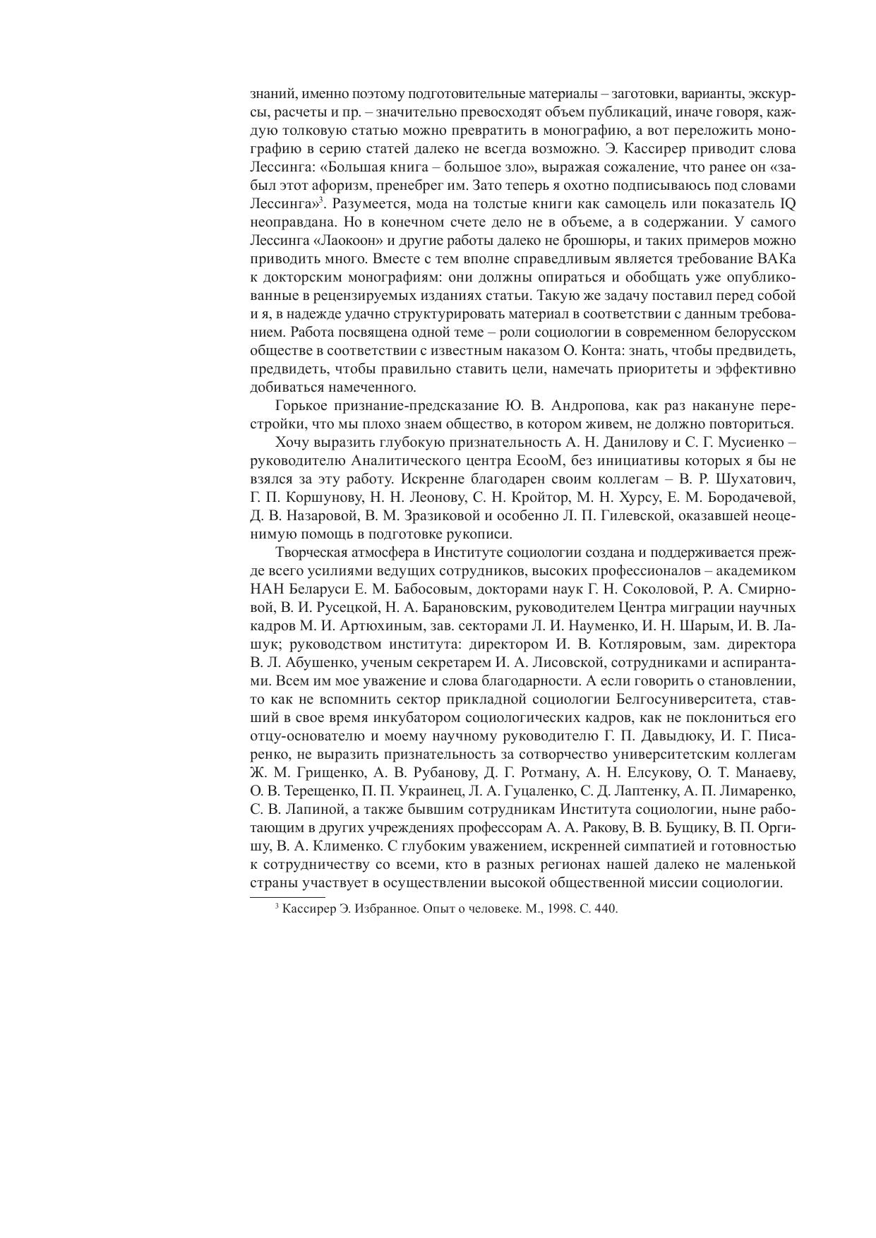 В монографии представлены результаты социологических исследований широкого круга социальных проблем развития современного белорусского общества, проведенных автором в течение многих лет. Читатели знакомы с некоторыми из них по публикациям в журнале «Социология». Лейтмотивом монографии является идея согласованности взаимных ожиданий всех активных просоциально настроенных субъектов общественной жизни на основе доверия, солидарности и толерантности. Большое внимание уделено методологии социологических исследований, роли социологии в белорусском обществе. Адресована социологам-исследователям, студентам и аспирантам социогуманитарного профиля, специалистам социальной сферы, маркетологам и управленцам, идеологическим работникам, всем, кто хотел бы использовать социологические данные для понимания и прогнозирования динамики общества, для разрешения конфликтных ситуаций и принятия обоснованных решений с учетом обратной связи с населением.