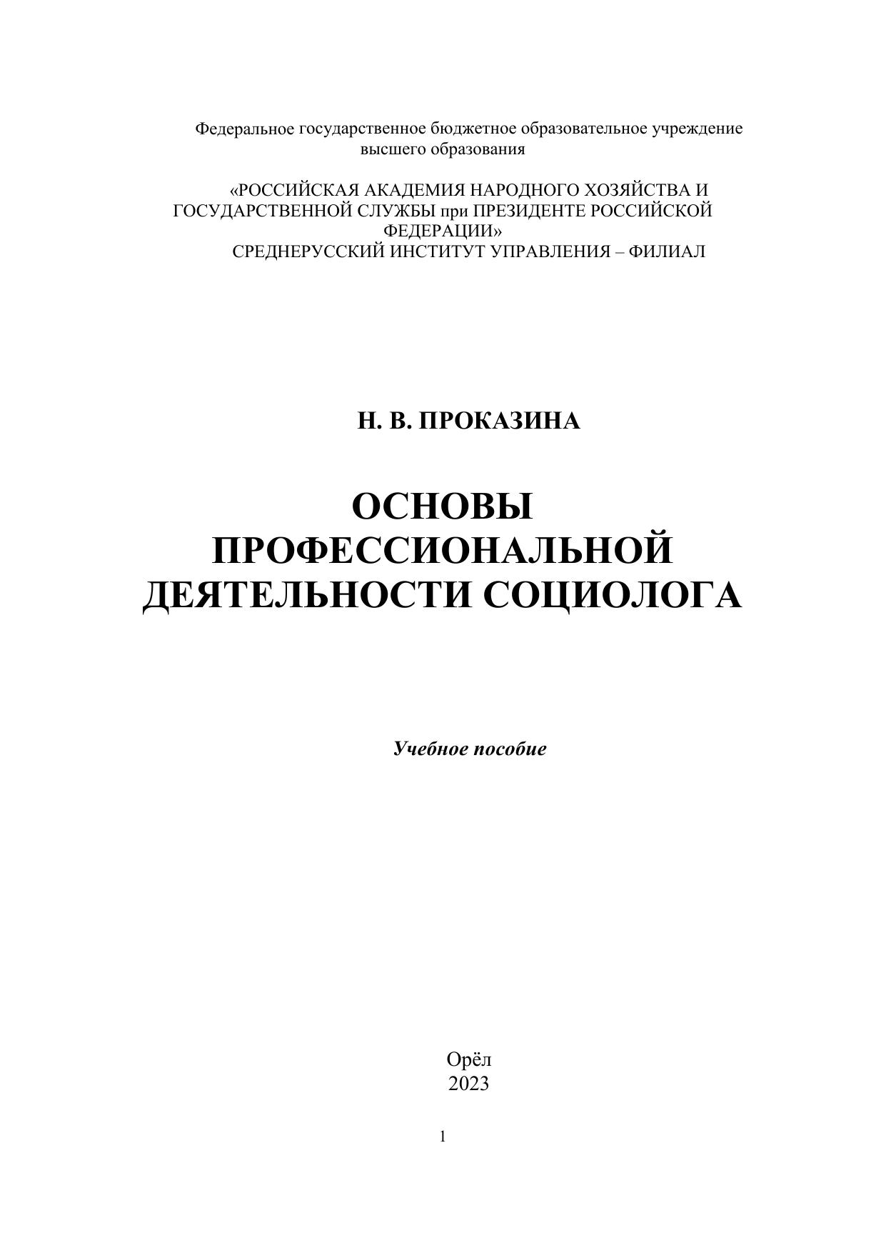 Основы профессиональной деятельности социолога