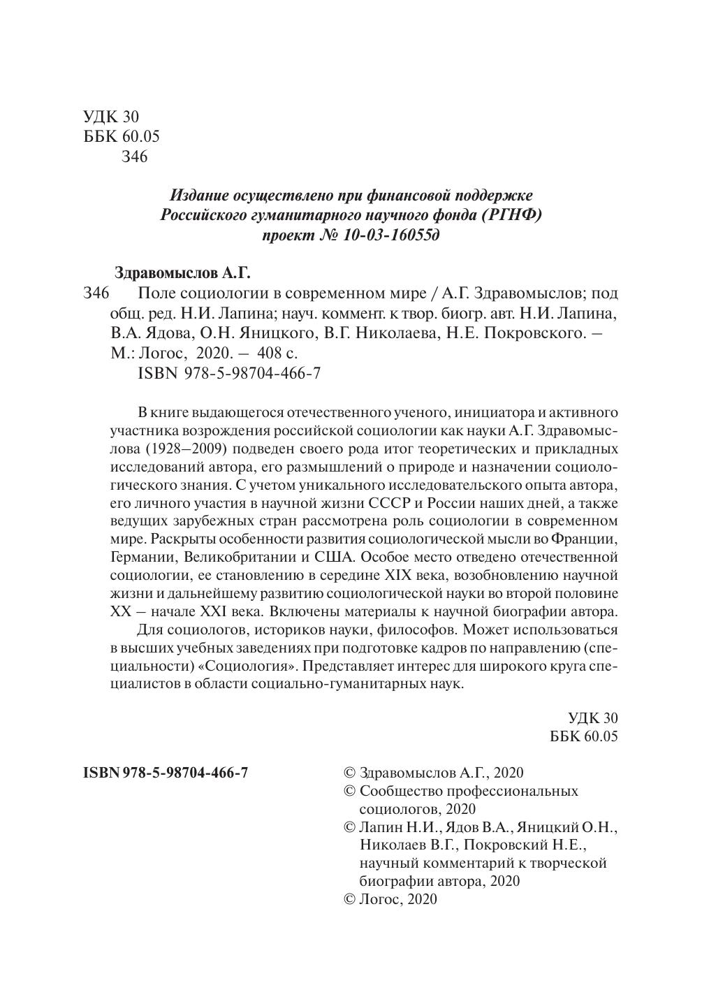 В книге выдающегося отечественного ученого, инициатора и активного участника возрождения российской социологии как науки А.Г. Здравомыслова (1928–2009) подведен своего рода итог теоретических и прикладных исследований автора, его размышлений о природе и назначении социологического знания. С учетом уникального исследовательского опыта автора, его личного участия в научной жизни СССР и России наших дней, а также ведущих зарубежных стран рассмотрена роль социологии в современном мире. Раскрыты особенности развития социологической мысли во Франции, Германии, Великобритании и США. Особое место отведено отечественной социологии, ее становлению в середине XIX века, возобновлению научной жизни и дальнейшему развитию социологической науки во второй половине ХХ – начале ХХI века. Включены материалы к научной биографии автора. Для социологов, историков науки, философов. Может использоваться в высших учебных заведениях при подготовке кадров по направлению (специальности) «Социология». Представляет интерес для широкого круга специалистов в области социально-гуманитарных наук.