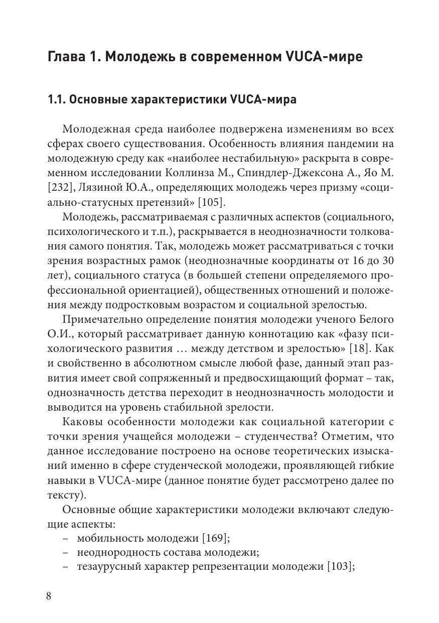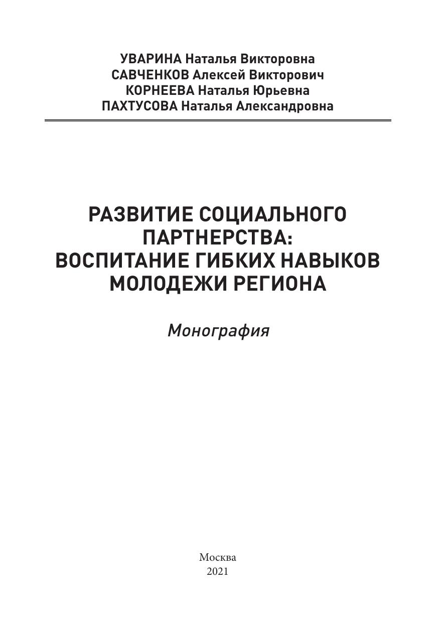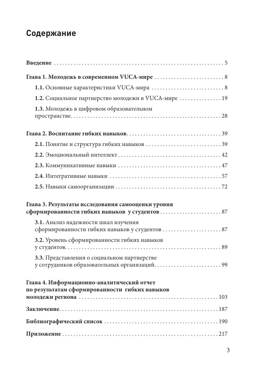Вторая часть монографии посвящена проблеме воспитания гибких навыков молодежи, в частности, раскрыты методы и формы формирования эмоционального интеллекта и коммуникативных навыков, а также навыков самоорганизации. В третьей главе монографии представлены результаты исследования самооценки уровня сформированности гибких навыков у студентов. А также представления о социальном партнерстве у сотрудников образовательных организаций.