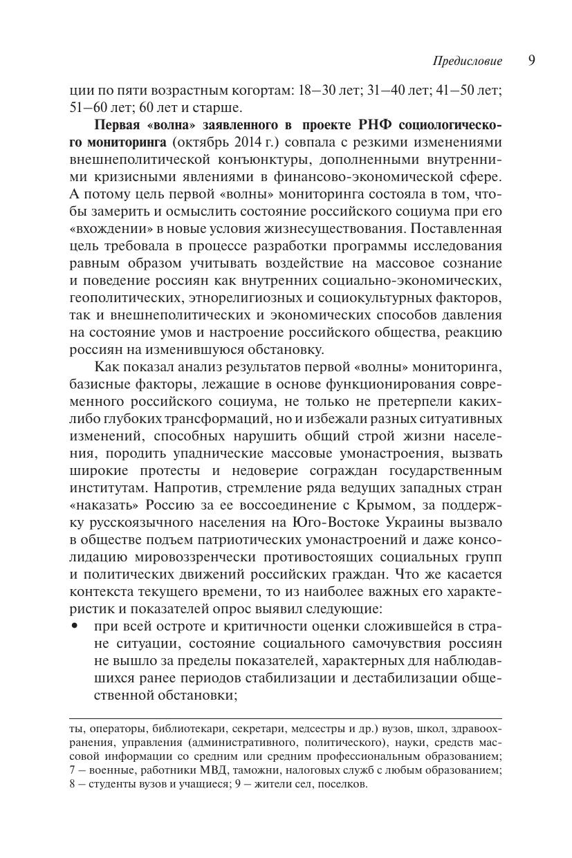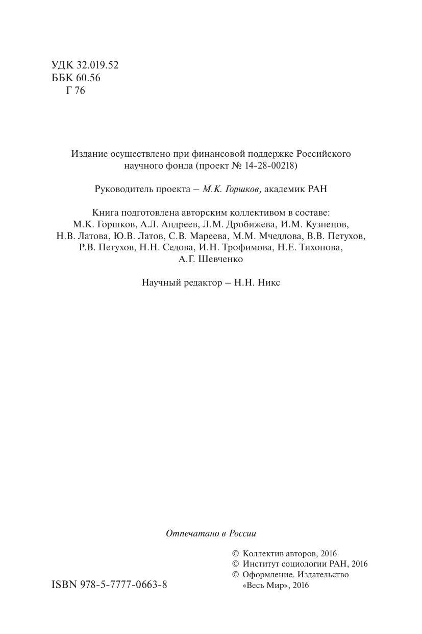 условиях, устойчивости и изменчивости мировоззренческих ориентаций и жизненных приоритетов россиян, анализу ресурсов социальной интеграции в полиэтническом и религиозном пространстве России. При этом представления о массовом восприятии новой действительности дополняются экспертным анализом перспектив развития российского общества.
