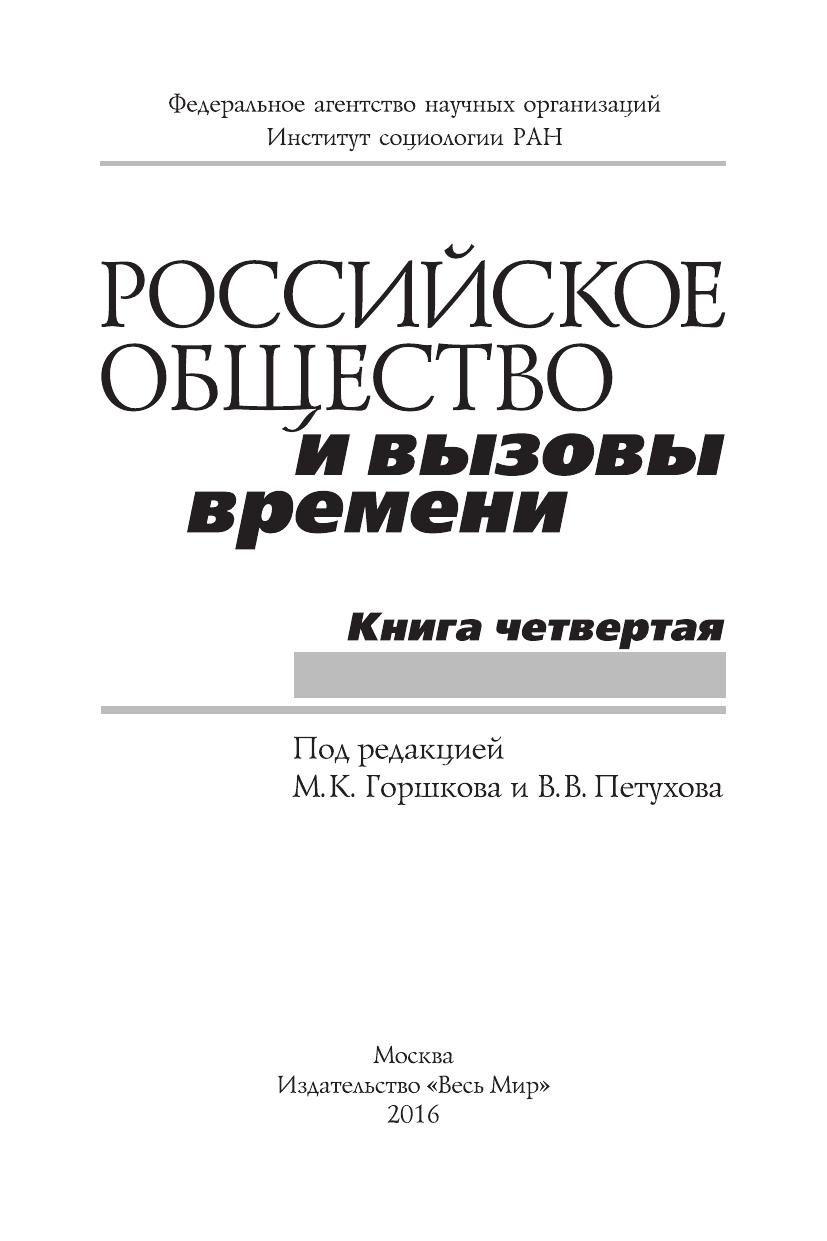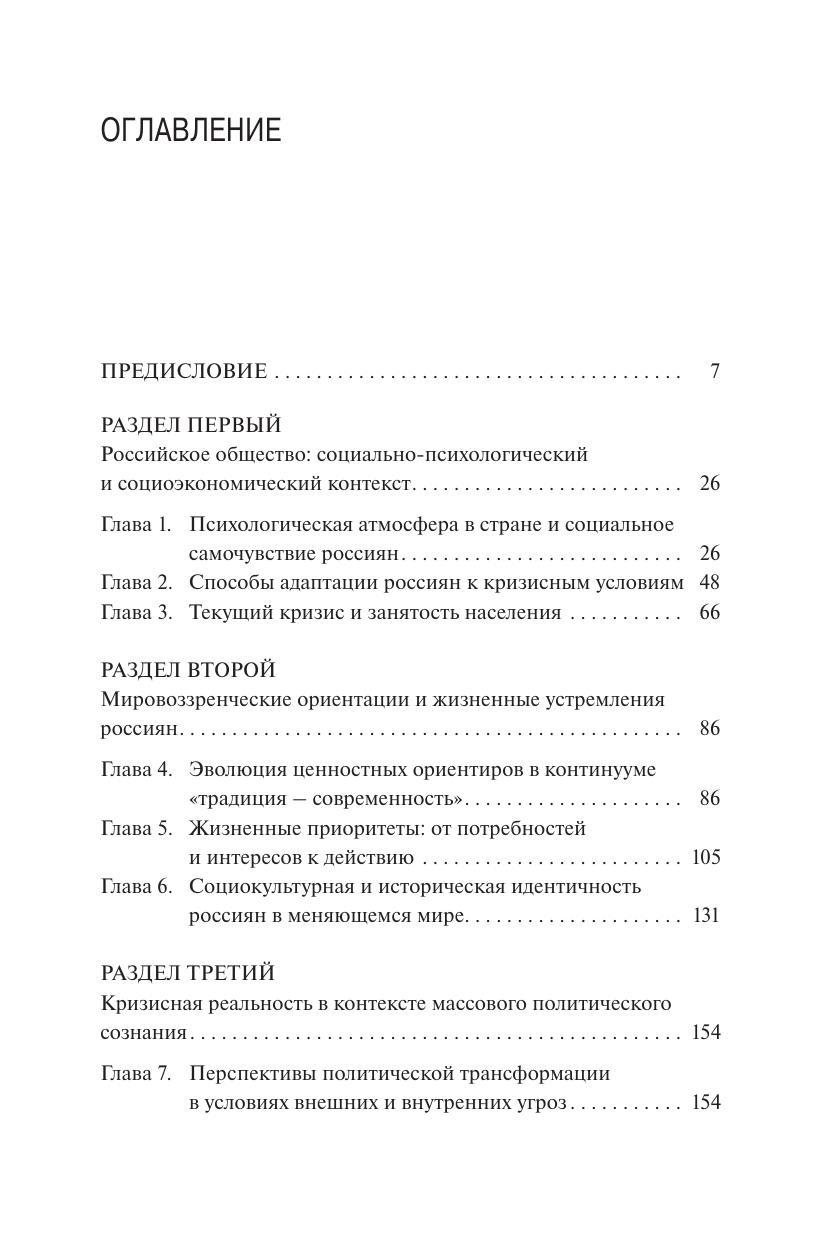В книге дается многоаспектный анализ результатов четвертой «волны» общенационального социологического исследования состояния и динамики российского общества в контексте новой реальности, обусловленной внешними и внутренними угрозами и рисками. Особое внимание уделяется экономическому и политическому поведению населения в кризисных