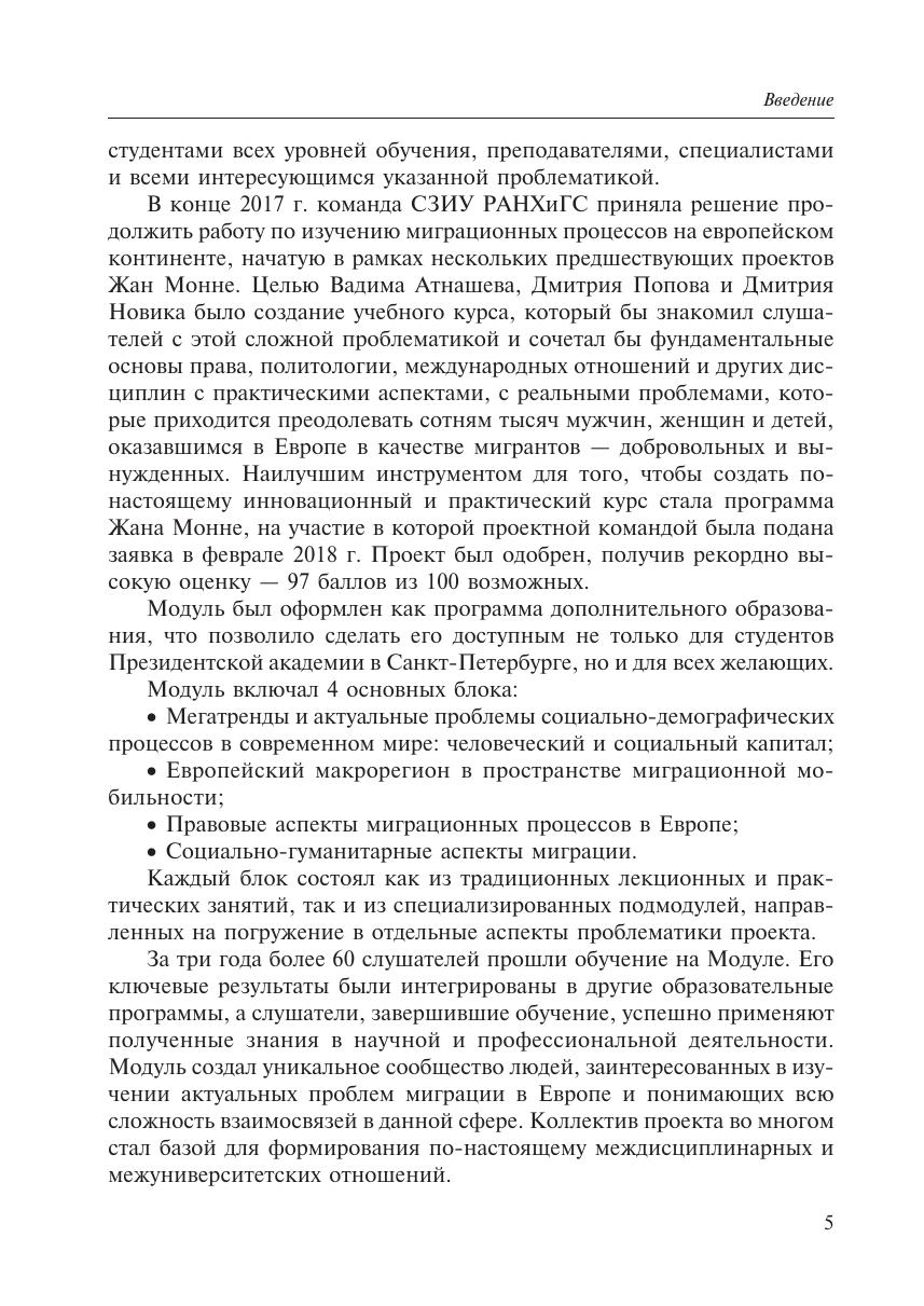 В сборнике представлены статьи слушателей и экспертов проекта «Влияние миграционных и социо-демографических процессов на периферию европейской интеграции. Политико-правовые и гуманитарные аспекты», реализованного при поддержке программы Эразмус+ — Модули Жан Монне в Петербургском кампусе Президентской Академии в 2018–2021 гг. В рамках проекта была создана инновационная учебная программа, посвященная ключевым миграционным вызовам, с которыми сталкивается современная Европа. Основу сборника составили статьи слушателей — студентов СЗИУ РАНХиГС, других университетов Санкт-Петербурга и заинтересованных в миграционной проблематике, уже получивших высшее образование.