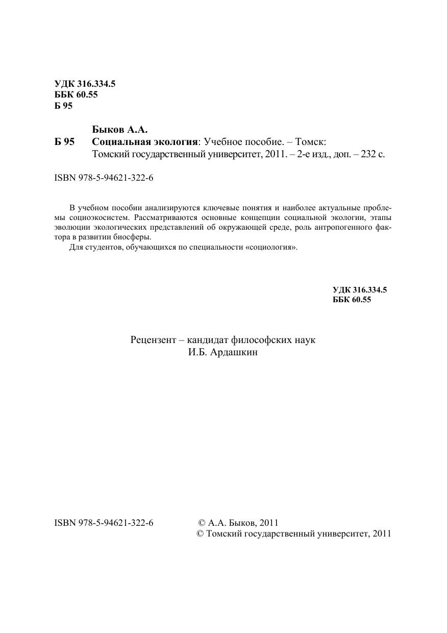 В учебном пособии анализируются ключевые понятия и наиболее актуальные проблемы социоэкосистем. Рассматриваются основные концепции социальной экологии, этапы эволюции экологических представлений об окружающей среде, роль антропогенного фактора в развитии биосферы. Для студентов, обучающихся по специальности «социология».