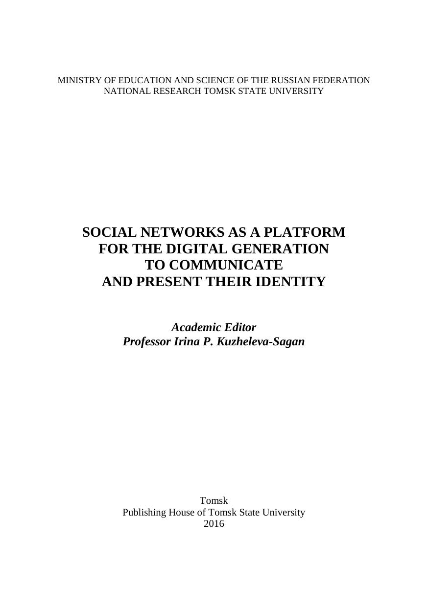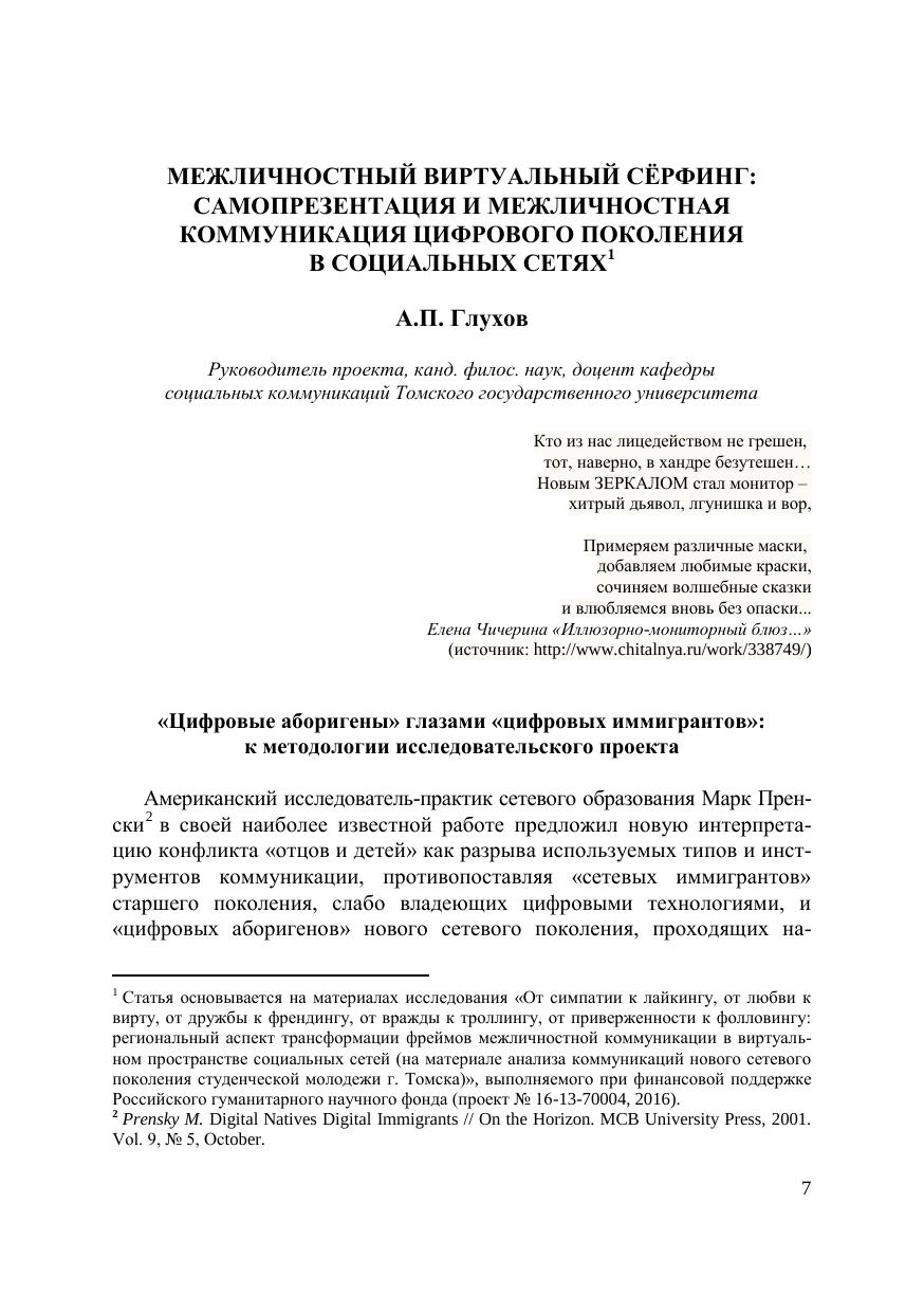 Социальные сети как площадка организации межличностных коммуникаций и перформанса идентичности цифрового поколения