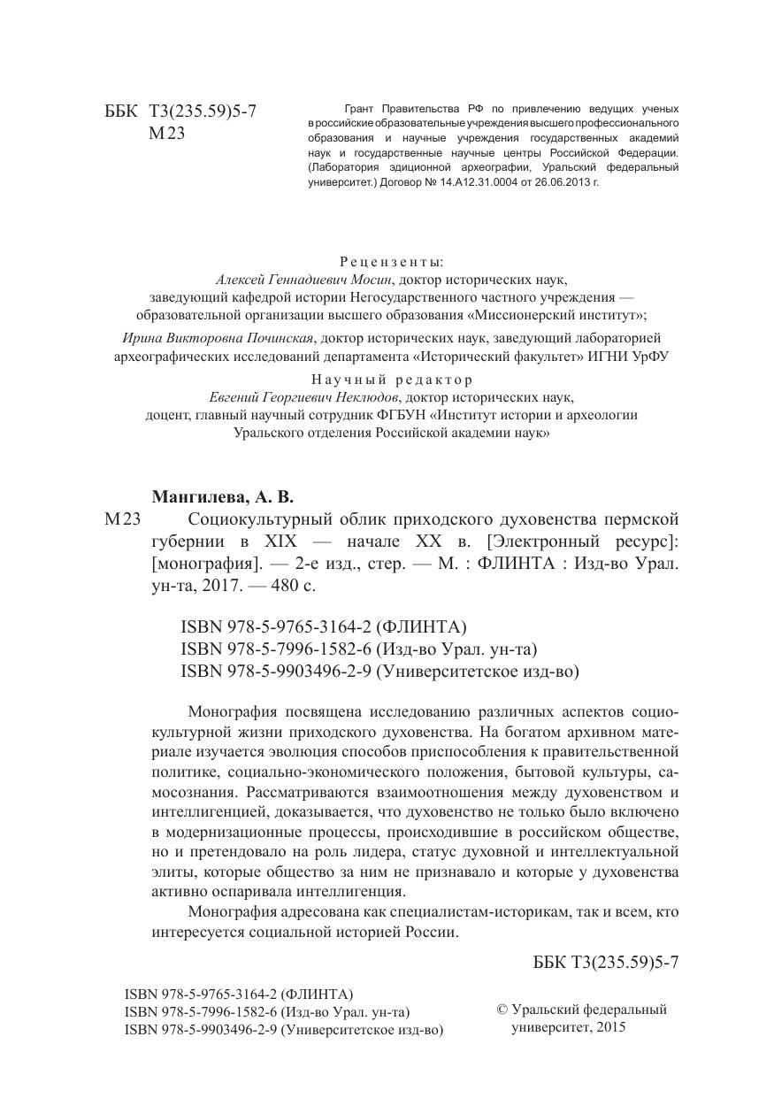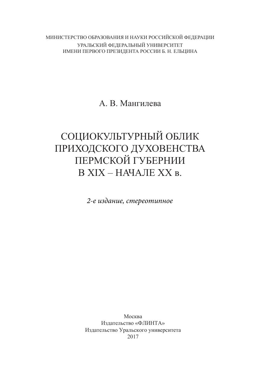 Социокультурный облик приходского духовенства Пермской губернии в XIX - начале XX века