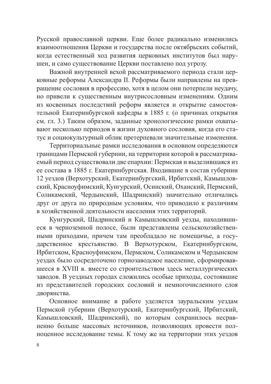 Монография посвящена исследованию различных аспектов социокультурной жизни приходского духовенства. На богатом архивном материале изучается эволюция способов приспособления к правительственной политике, социально-экономического положения, бытовой культуры, самосознания. Рассматриваются взаимоотношения между духовенством и интеллигенцией, доказывается, что духовенство не только было включено в модернизационные процессы, происходившие в российском обществе, но и претендовало на роль лидера, статус духовной и интеллектуальной элиты, которые общество за ним не признавало, и которые у духовенства активно оспаривала интеллигенция. Монография адресована как специалистам-историкам, так и всем, кто интересуется социальной историей России.