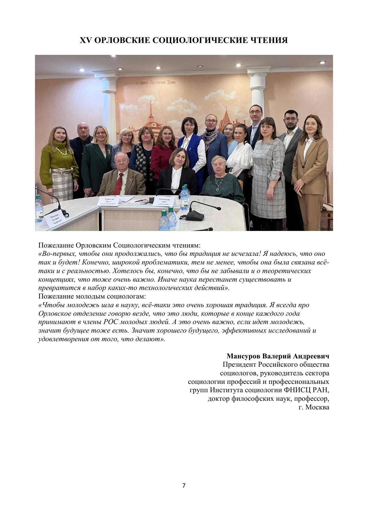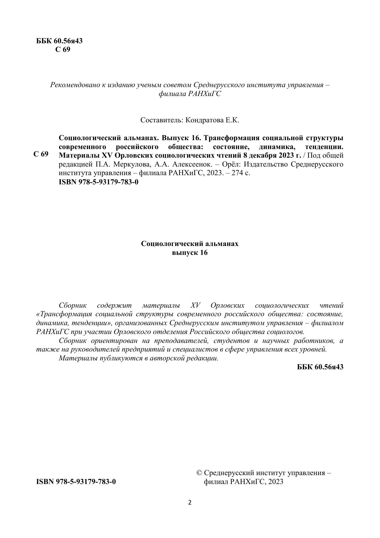 Социологический альманах. Выпуск 16. Трансформация социальной структуры современного российского общества: состояние, динамика, тенденции. Материалы XV Орловских социологических чтений 8 декабря 2023 г.