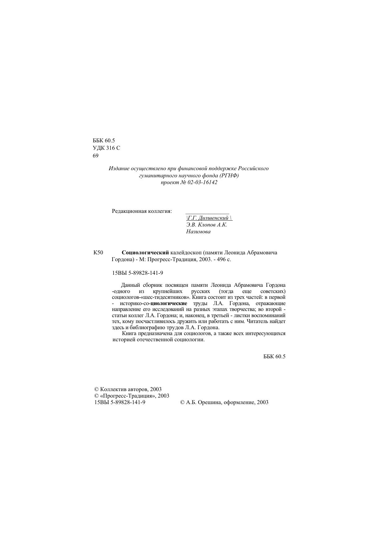 Социологический калейдоскоп. Памяти Леонида Абрамовича Гордона