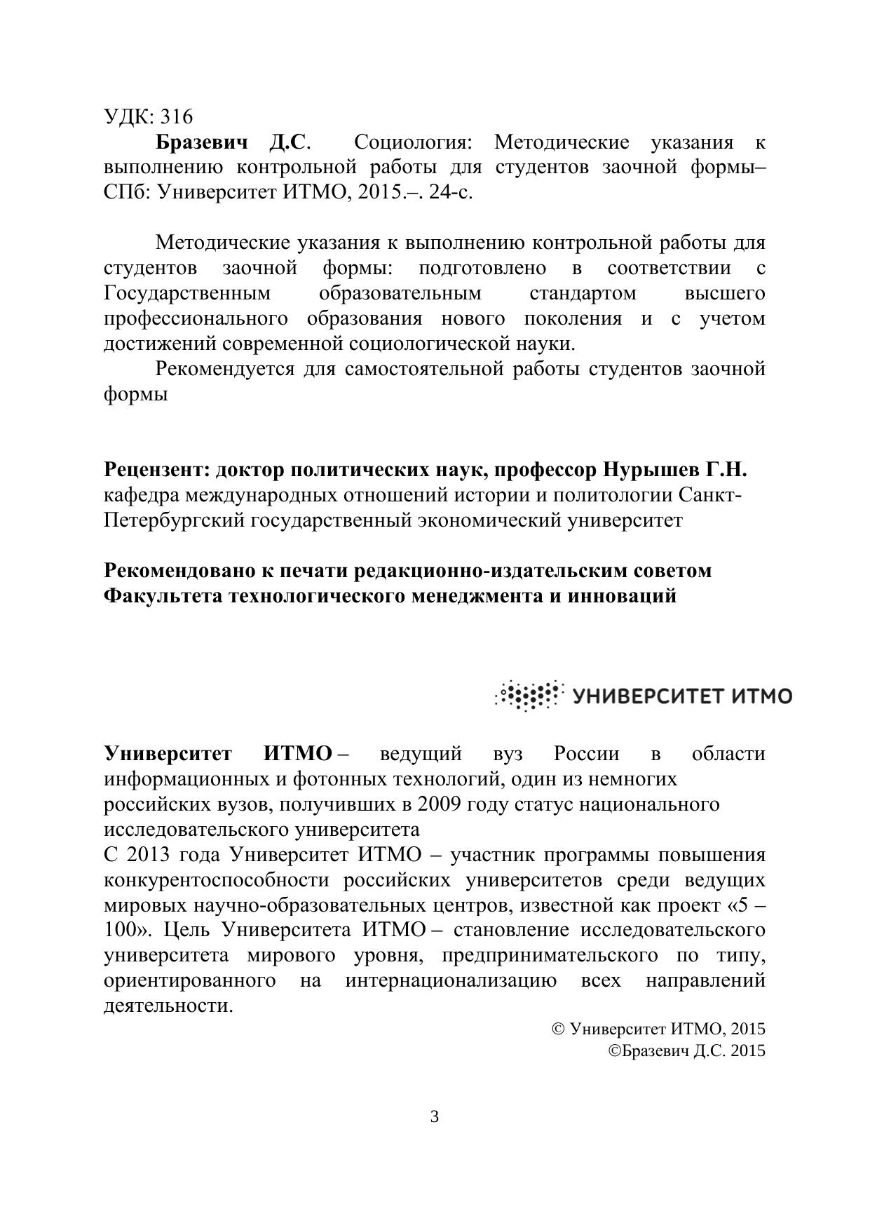 Методические указания к выполнению контрольной работы для студентов заочной формы: подготовлено в соответствии с Государственным образовательным стандартом высшего профессионального образования нового поколения и с учетомдостижений современной социологической науки. Рекомендуется для самостоятельной работы студентов заочной формы.