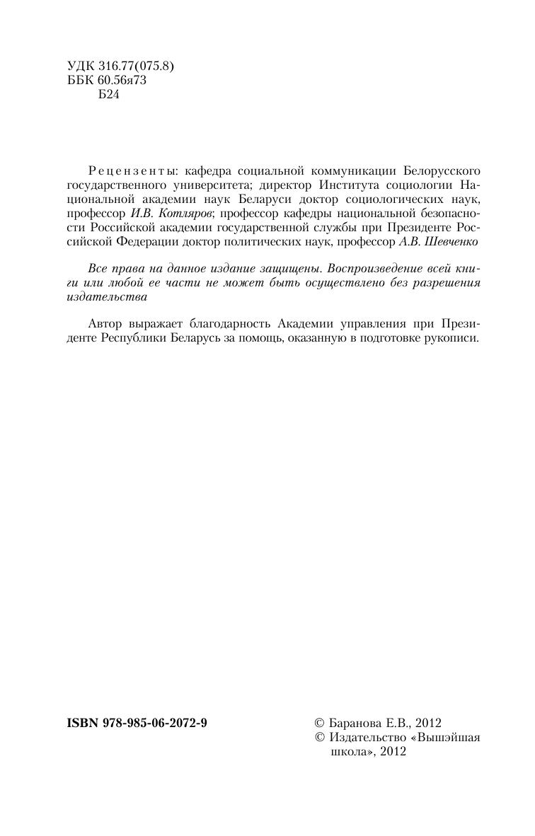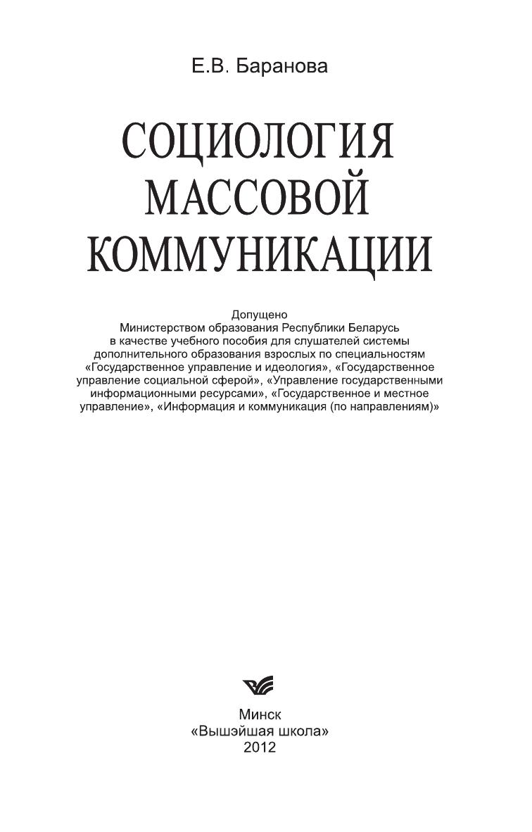 Рассматриваются роль и место массовой коммуникации в социально-политической системе анализируется взаимодействие средств массовой информации и средств массовой коммуникации с основными ветвями государственной власти систематизируются основные технологии массовой коммуникации квалифицируется деятельность средств массовой коммуникации как социального ресурса госудорственного управления излагаются особенности процедуры социологического исследования массовой коммуникации. Для слушателей системы дополнительного образования взрослых. Может быть использовано студентами, широким кругом читателей.