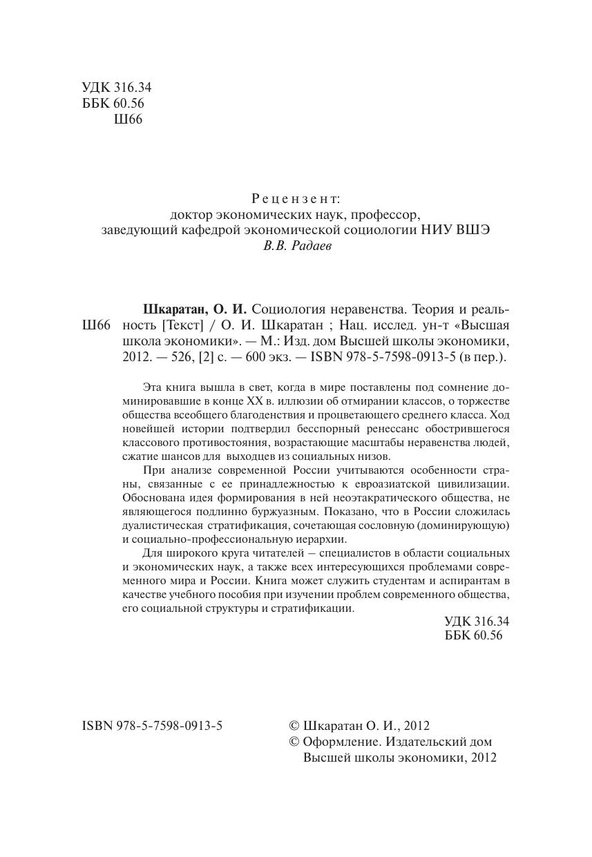 Эта книга вышла в свет, когда в мире поставлены под сомнение доминировавшие в конце ХХ в. иллюзии об отмирании классов, о торжестве общества всеобщего благоденствия и процветающего среднего класса. Ход новейшей истории подтвердил бесспорный ренессанс обострившегося классового противостояния, возрастающие масштабы неравенства людей, сжатие шансов для выходцев из социальных низов. При анализе современной России учитываются особенности страны, связанные с ее принадлежностью к евроазиатской цивилизации. Обоснована идея формирования в ней неоэтакратического общества, не являющегося подлинно буржуазным. Показано, что в России сложилась дуалистическая стратификация, сочетающая сословную (доминирующую) и социально-профессиональную иерархии. Для широкого круга читателей – специалистов в области социальных и экономических наук, а также всех интересующихся проблемами современного мира и России. Книга может служить студентам и аспирантам в качестве учебного пособия при изучении проблем современного общества, его социальной структуры и стратификации.