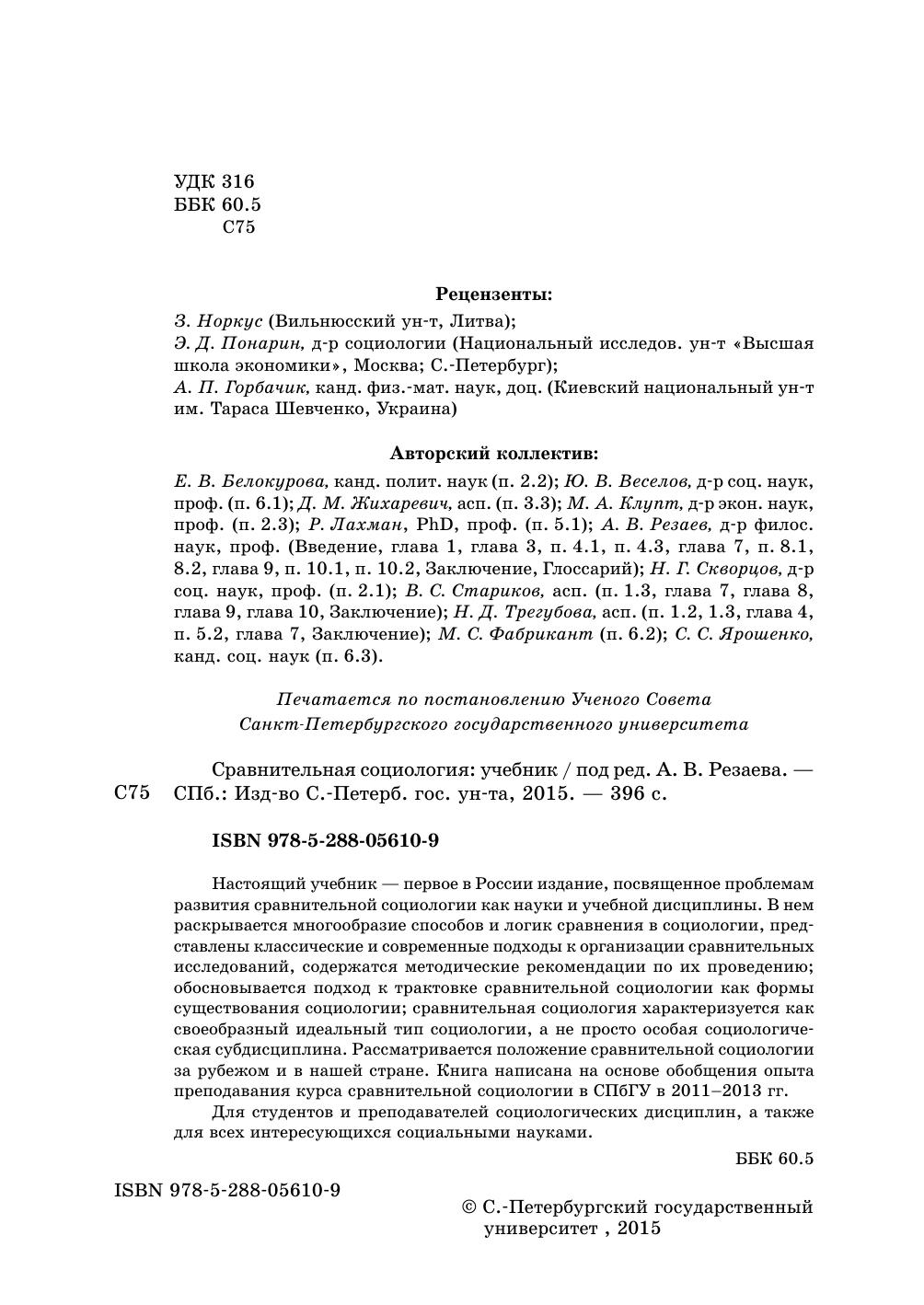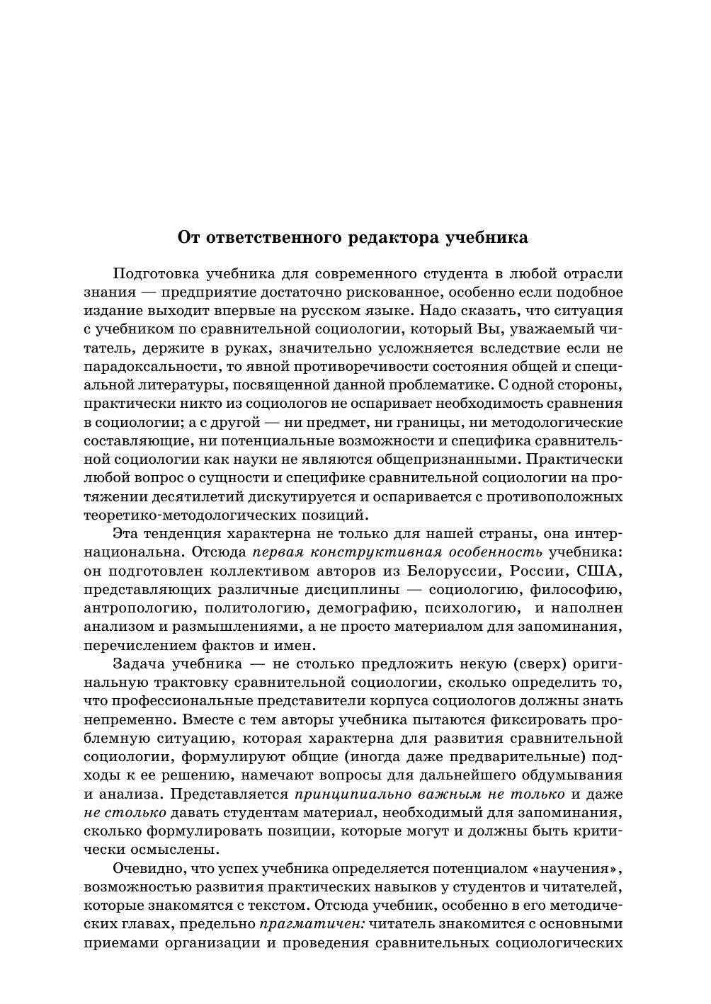 Настоящий учебник — первое в России издание, посвященное проблемам развития сравнительной социологии как науки и учебной дисциплины. В нем раскрывается многообразие способов и логик сравнения в социологии, представлены классические и современные подходы к организации сравнительных исследований, содержатся методические рекомендации по их проведению; обосновывается подход к трактовке сравнительной социологии как формы существования социологии; сравнительная социология характеризуется как своеобразный идеальный тип социологии, а не просто особая социологическая субдисциплина. Рассматривается положение сравнительной социологии за рубежом и в нашей стране. Книга написана на основе обобщения опыта преподавания курса сравнительной социологии в СПбГУ в 2011–2013 гг. Для студентов и преподавателей социологических дисциплин, а также для всех интересующихся социальными науками.