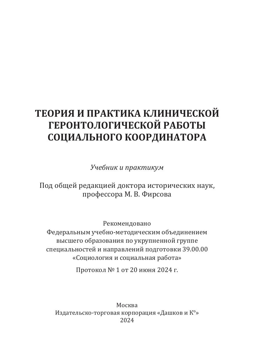 Теория и практика клинической геронтологической работы социального координатора