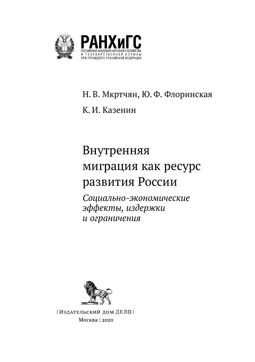 Внутренняя миграция как ресурс развития России: социально-экономические эффекты, издержки и ограничения