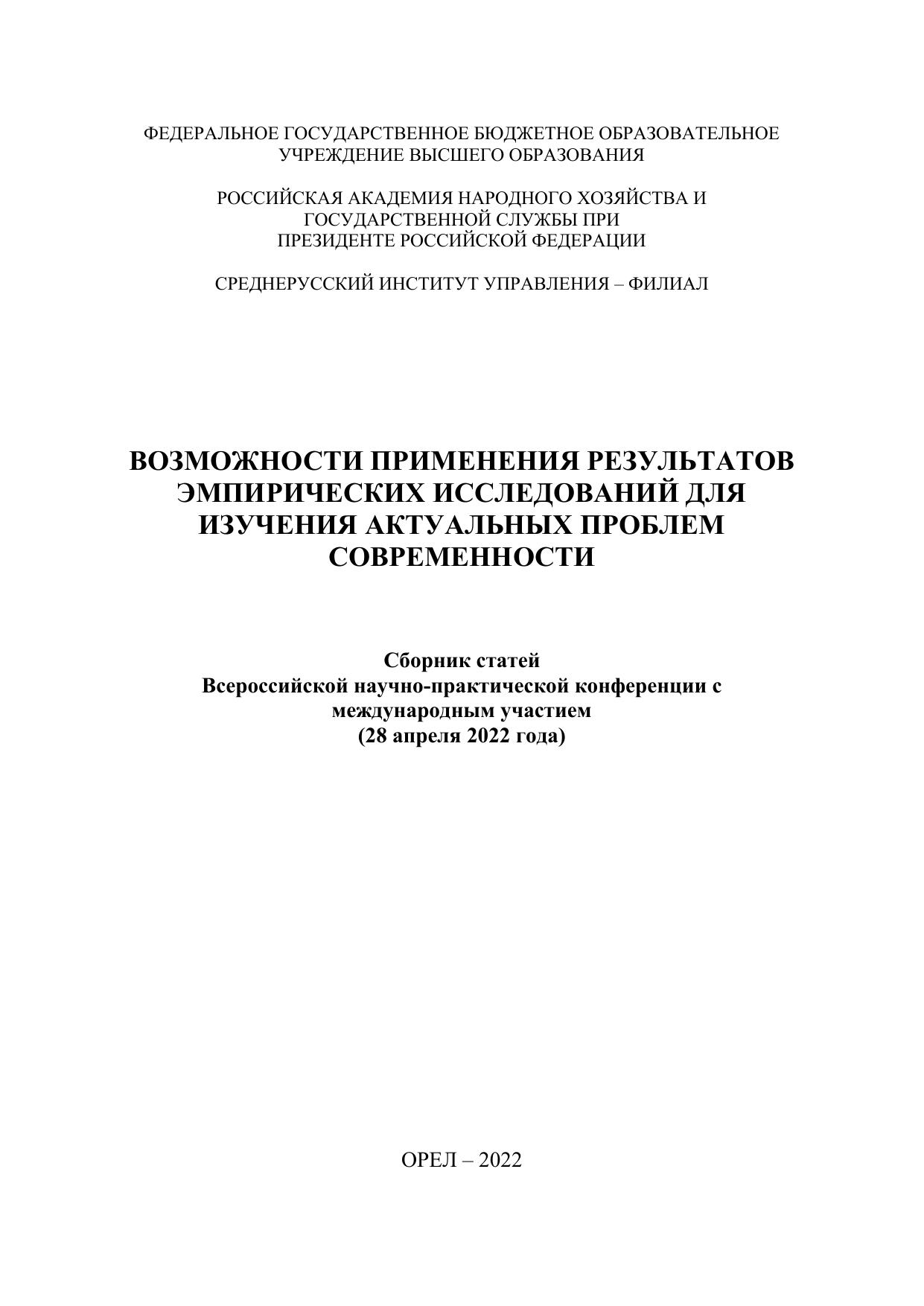 Возможности применения результатов эмпирических исследований для изучения актуальных проблем современности. Сборник статей Всероссийской научно- практической конференции с международным участием 28 апреля 2022 года