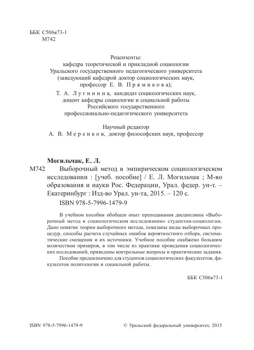 Выборочный метод в эмпирическом социологическом исследовании: учеб. пособие