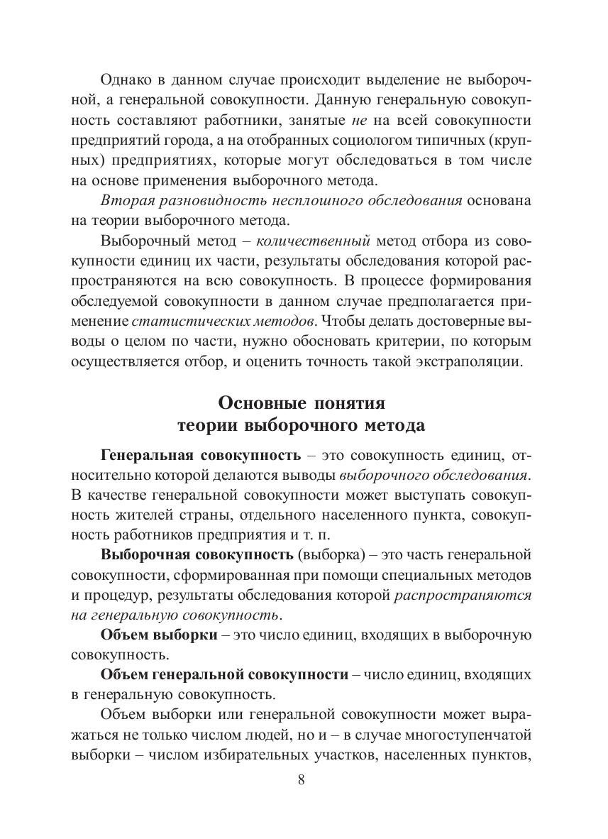 В учебном пособии обобщен опыт преподавания дисциплины «Выборочный метод в социологическом исследовании» студентам-социологам. Дано понятие теории выборочного метода, показаны виды выборочных процедур, способы расчета случайных ошибок вероятностного отбора, систематические смещения и их источники. Учебное пособие снабжено большим количеством примеров, в том числе из практики проведения социологических исследований, приведены контрольные вопросы и практические задания. Пособие предназначено для студентов социологических факультетов, факультетов политологии и социальной работы.