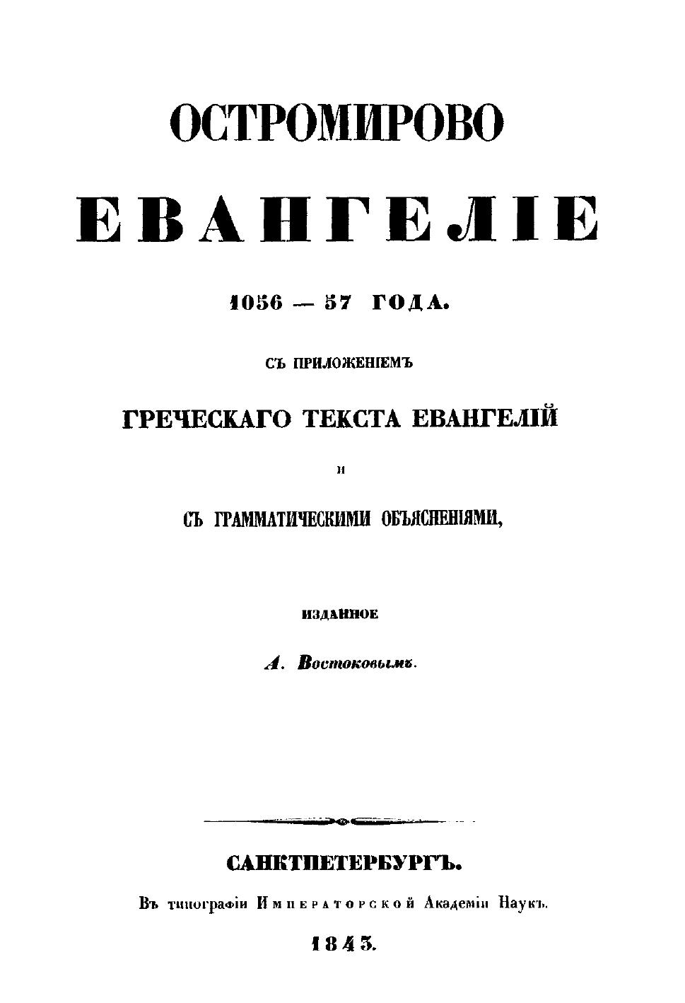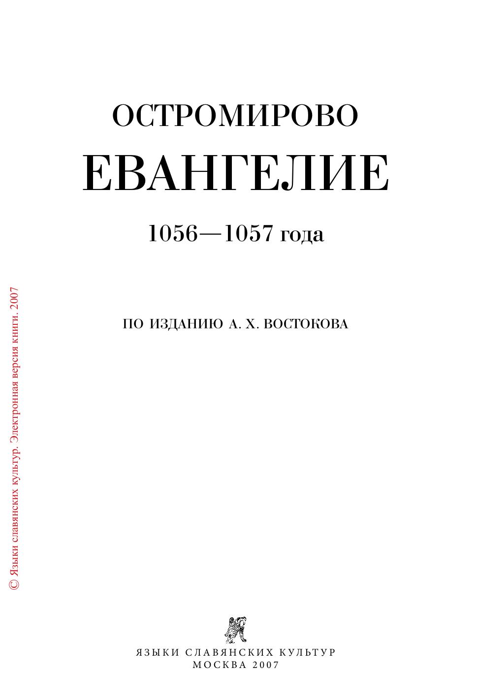 Остромирово евангелие 1056 — 1057 г. по изданию А.Х. Востокова