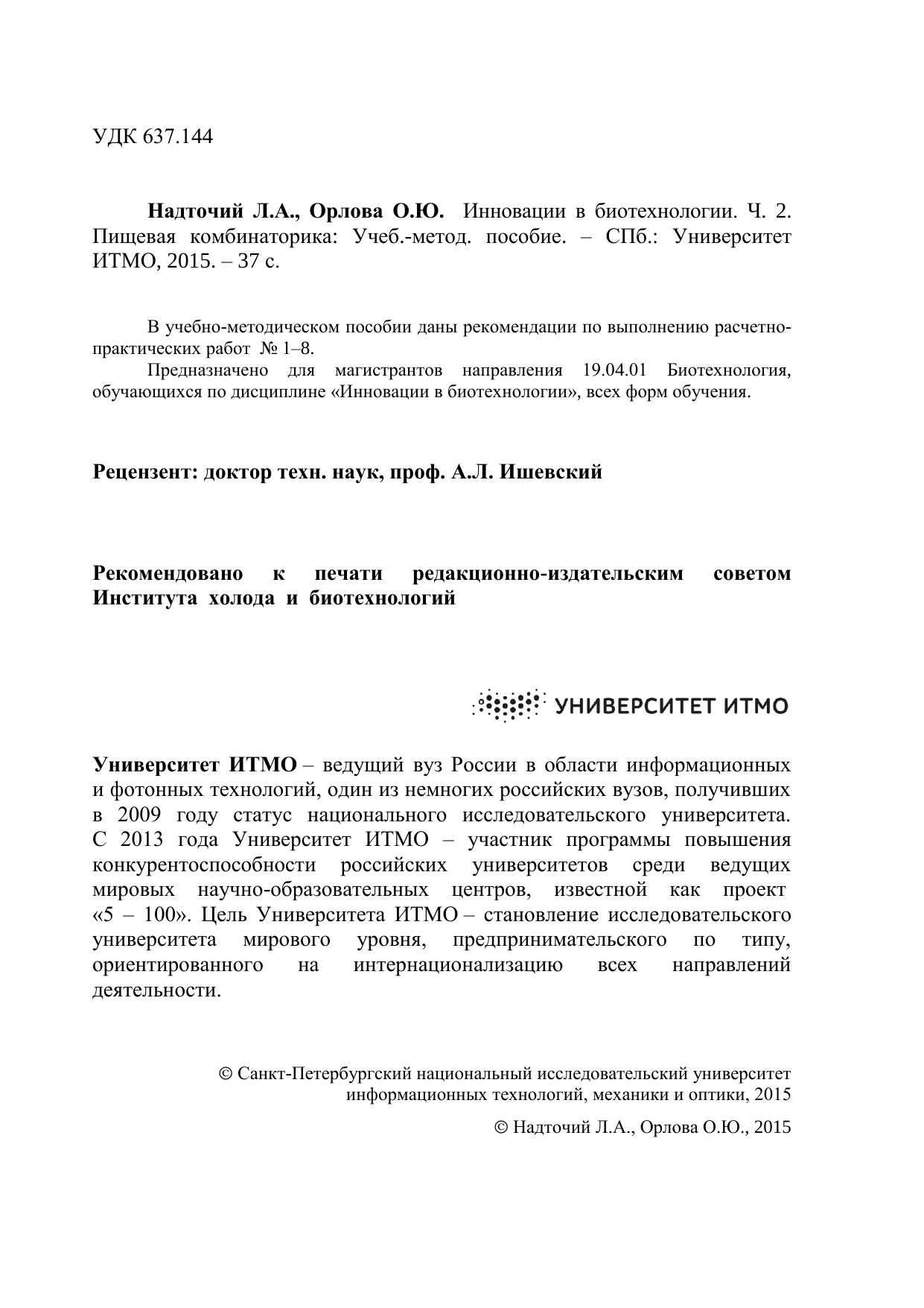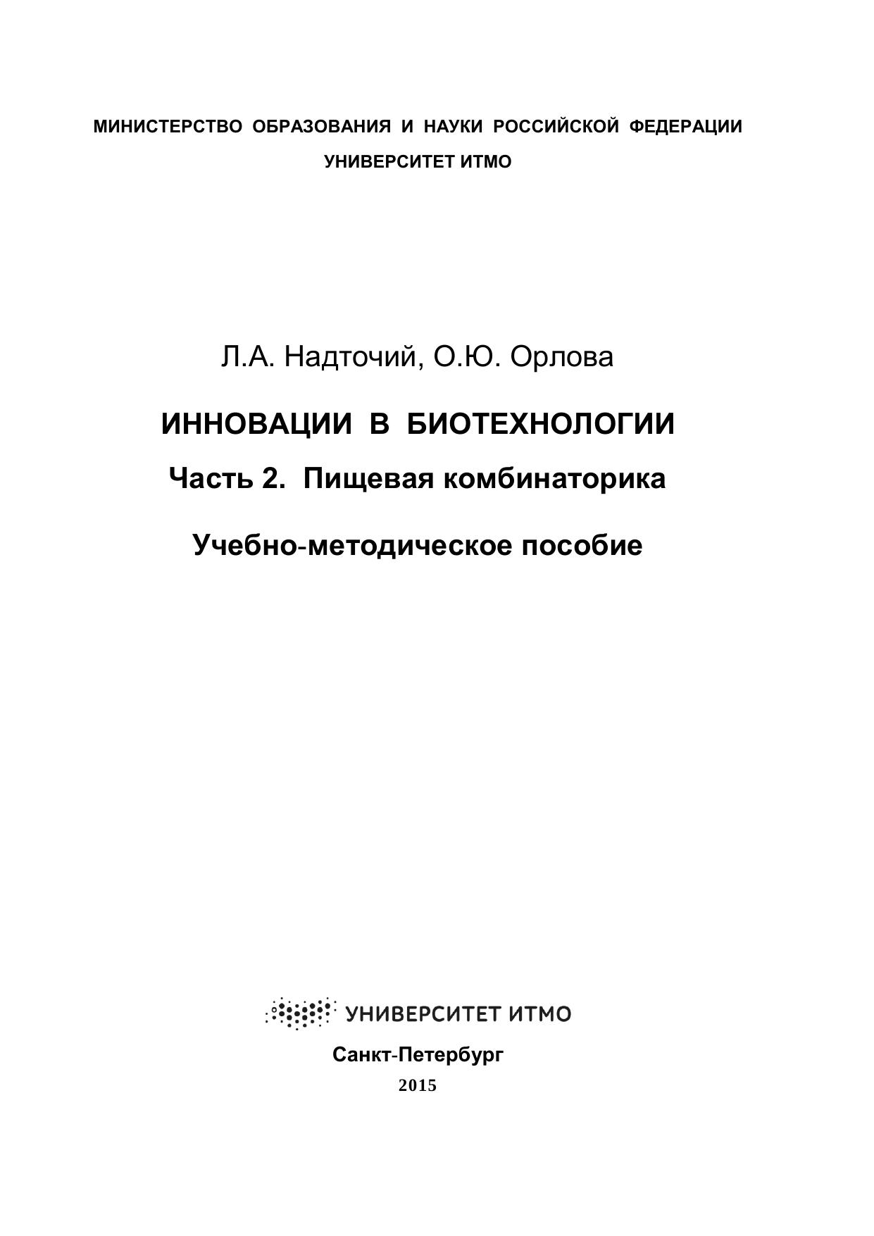 Инновации в биотехнологии. Ч. 2. Пищевая комбинаторика: учебно-методическое пособие