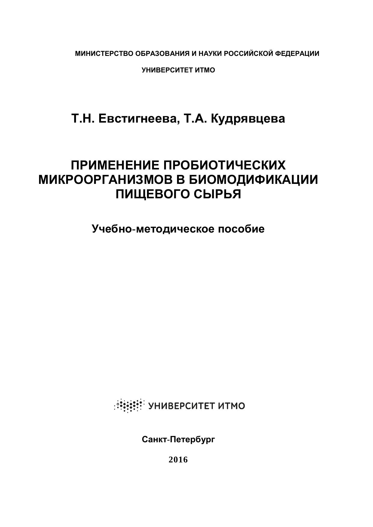 Применение пробиотических микроорганизмов в биомодификации пищевого сырья: учебно-методическое пособие