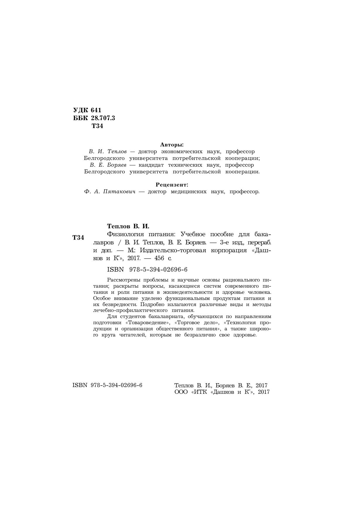 Для студентовбакалавриата,обучающихся по направлениям подготовки"Товароведение", "Торговое дело", "Технология продукции и организация общественного питания", а также широкого круга читателей, которым не безразлично свое здоровье.