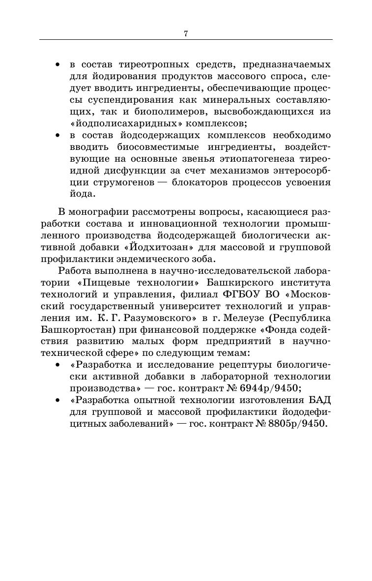 В монографии представлены современные данные о состоянии йодной профилактики в Российской Федерации и странах СНГ. Основное внимание уделено изучению механизмов комплексообразования неорганических форм йода с биодеградируемыми полисахаридами с применением современных методов физико-химического анализа — ИК-, УФ- и ЯМР-спектроскопии. Приведены результаты изучения дисперсности, технологических, реологических, антиоксидантных свойств и физиологической активности йодсодержащей биологически активной добавки на основе полисахаридов природного генеза — низкомолекулярного хитозана и НМ-В-геллановой камеди. Материалы исследований представляют интерес для специалистов пищевой промышленности и научных работников, занимающихся вопросами лечения и профилактики йоддефицитных заболеваний. Книга также будет полезна студентам вузов, обучающимся по направлениям подготовки и специальностям, входящим в УГС «Промышленная экология и биотехнологии».