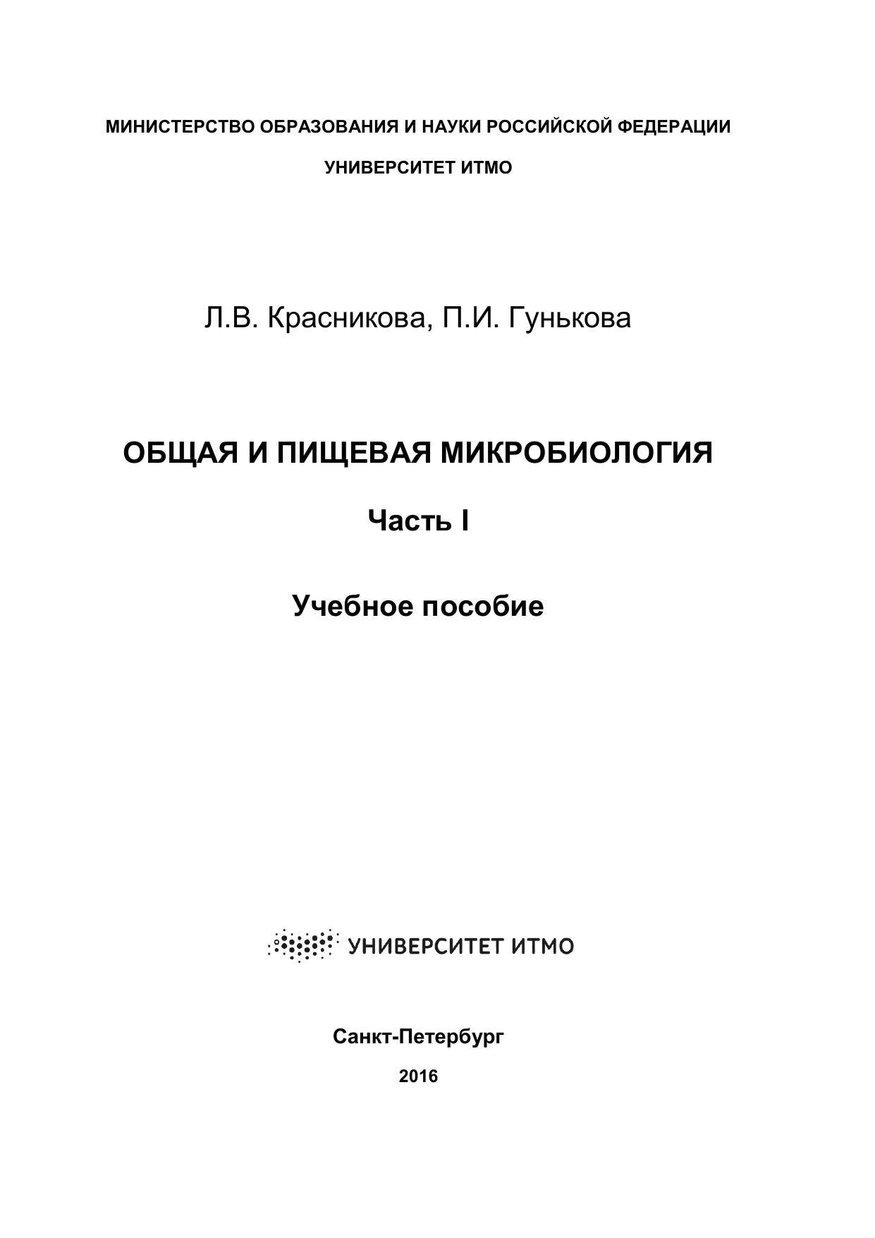 Общая и пищевая микробиология: учебное пособие. Часть I
