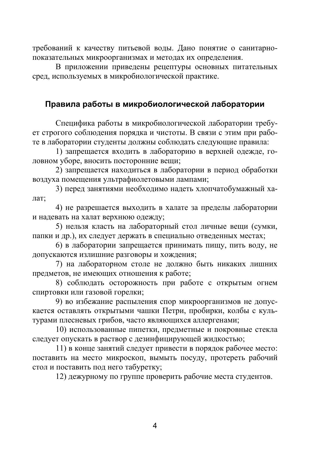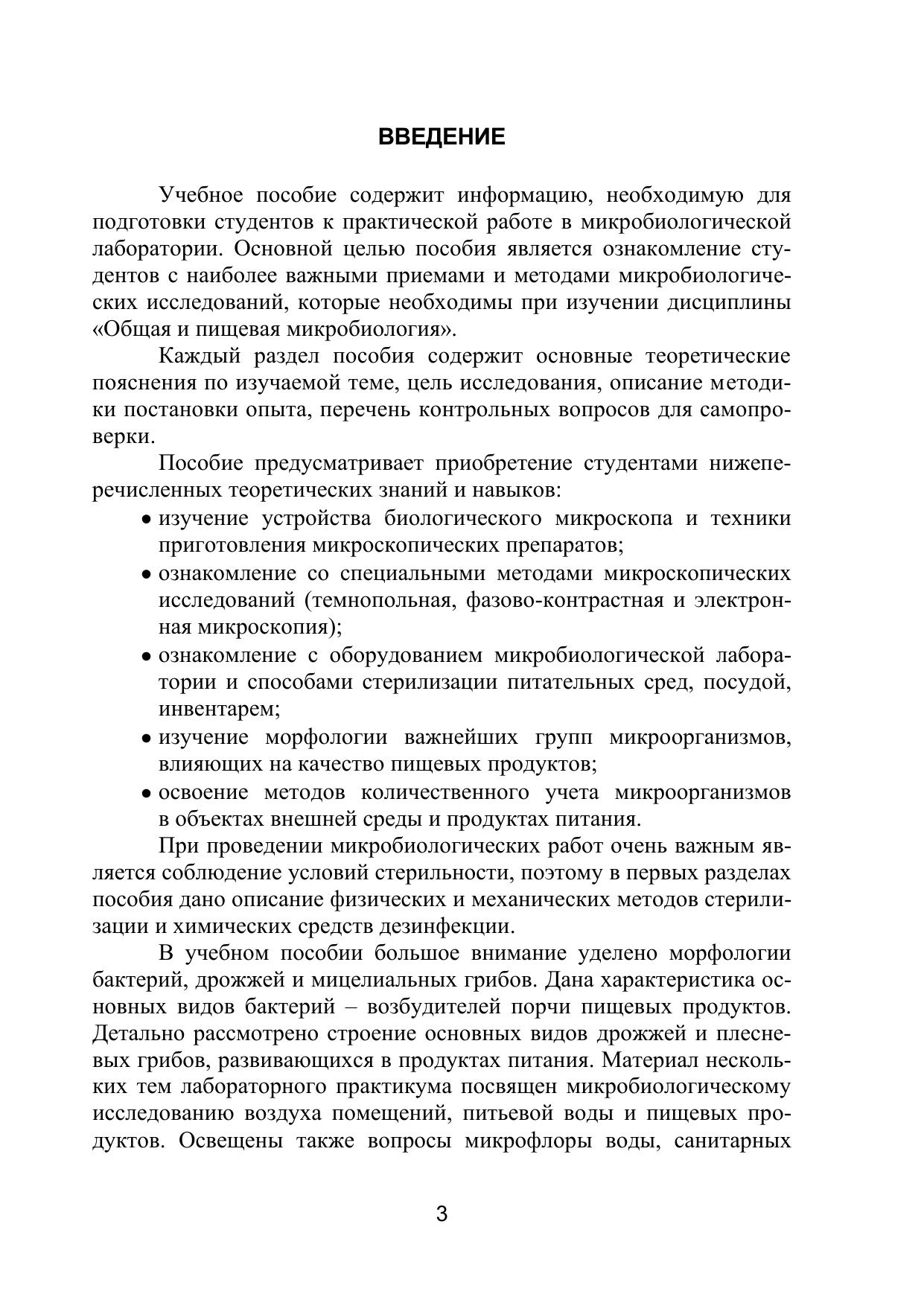 Рассматриваются вопросы общей микробиологии, дается понятие об организации микробиологической лаборатории, методах стерилизации микробиологических объектов, а также санитарно-гигиенического контроля воздуха производственных помещений, питьевой воды и пищевых продуктов.