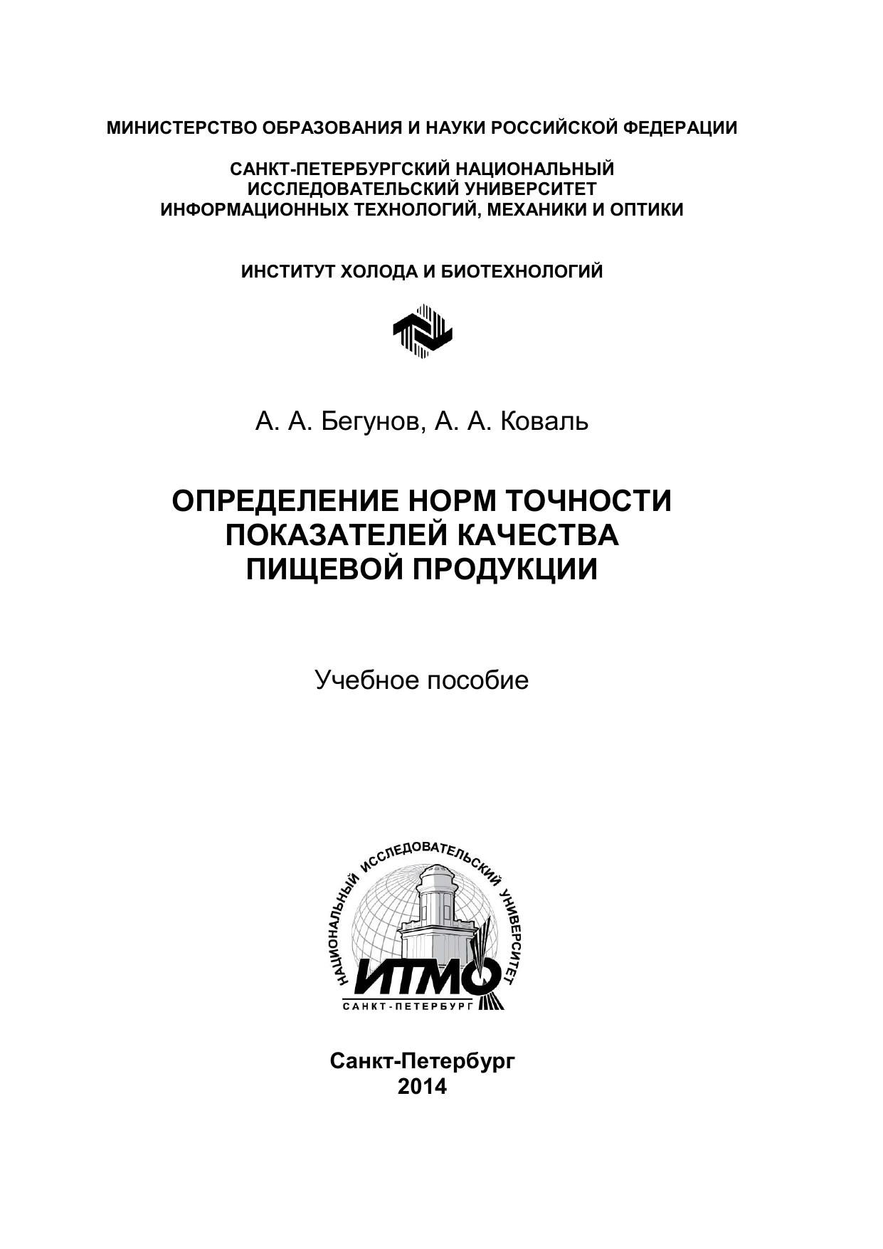Учебное пособие по дисциплине «Метрология» содержит методологию разработки и регламентацию показателей качества продукции и технологических параметров, а также допустимые нормы точности, применяемые при производстве и контроле качества в пищевой промышленности. Предназначено для студентов, обучающихся по направлениям подготовки 220700 Автоматизация технологических процессов и производств, 151000 Технологические машины и оборудование, 240700 Биотехнология, всех форм обучения.